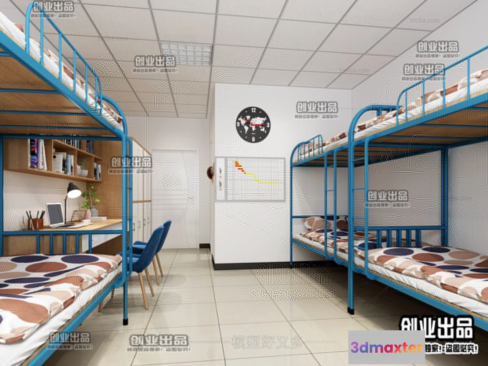 3D Models / 3D Scenes / Interior / Commercial Spaces / 3D SCHOOL INTERIOR (VRAY) – DOMITORY 3D SCENES – 034