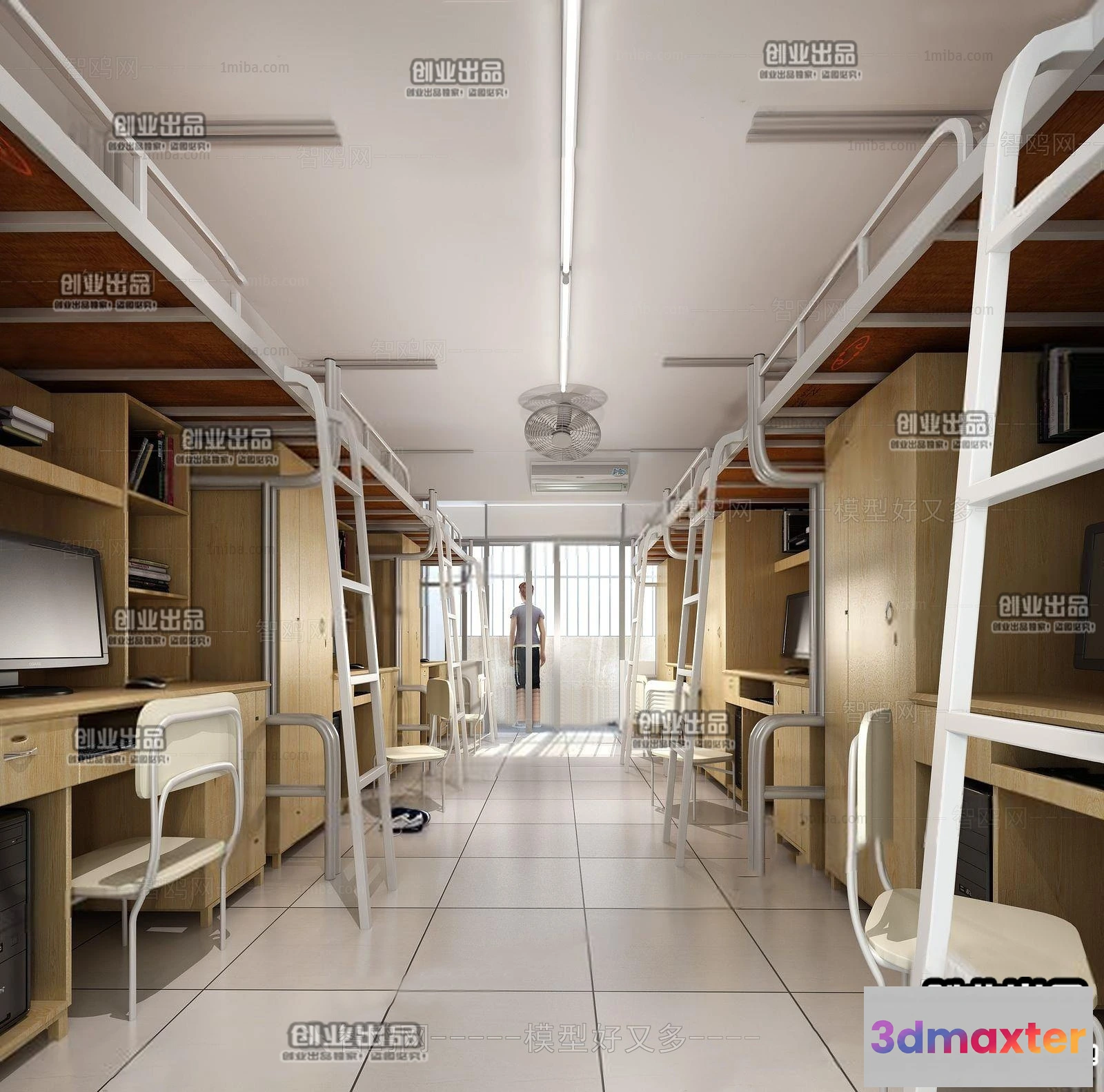 3D Models / 3D Scenes / Interior / Commercial Spaces / 3D SCHOOL INTERIOR (VRAY) – DOMITORY 3D SCENES – 035