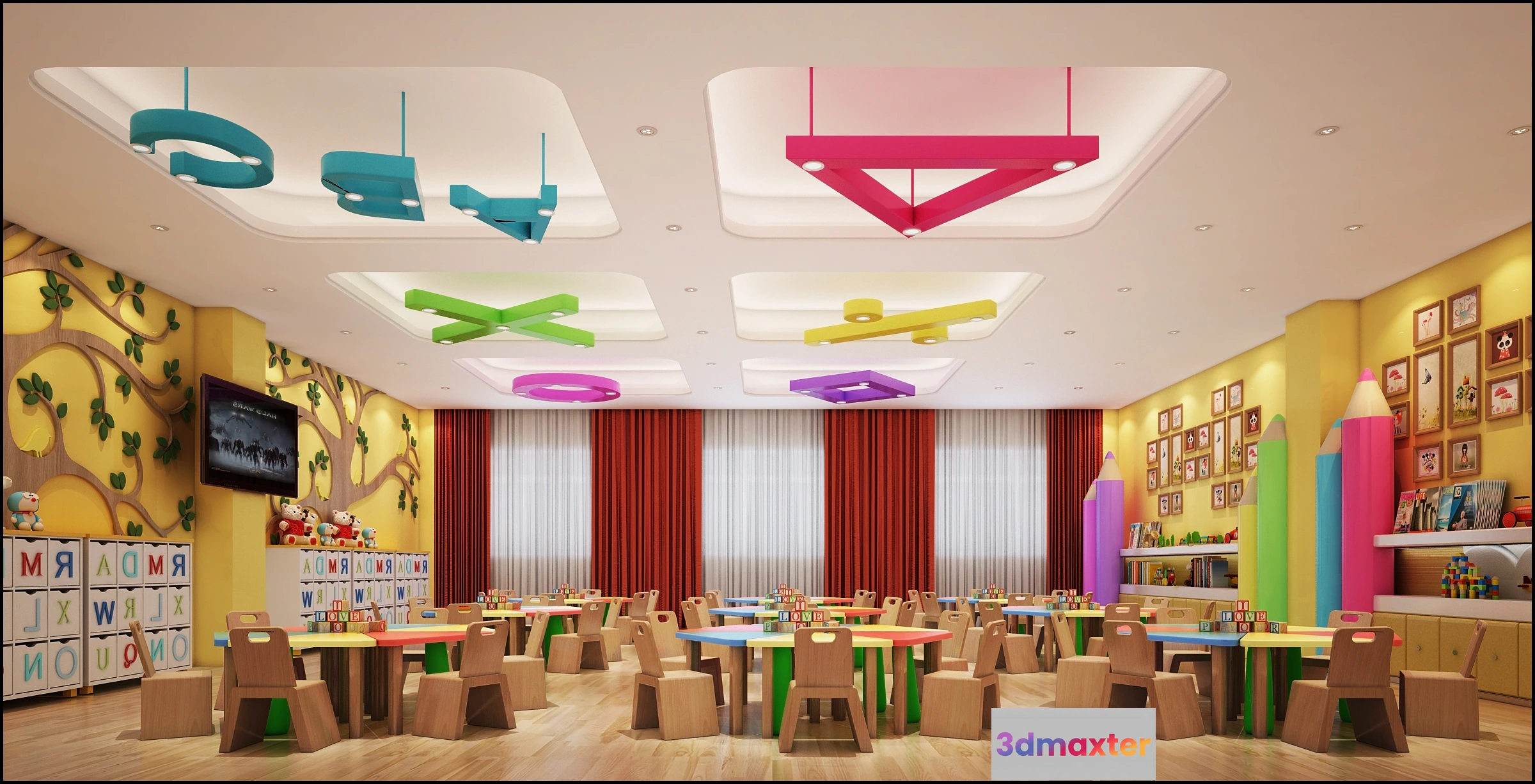 3D Models / 3D Scenes / Interior / Commercial Spaces / 3D SCHOOL INTERIOR (VRAY) – KINDERGARTEN 3D SCENES – 054