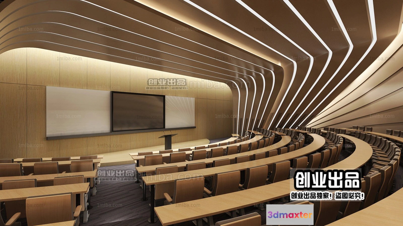 3D Models / 3D Scenes / Interior / Commercial Spaces / 3D SCHOOL INTERIOR (VRAY) – LECTURE HALL 3D SCENES – 039