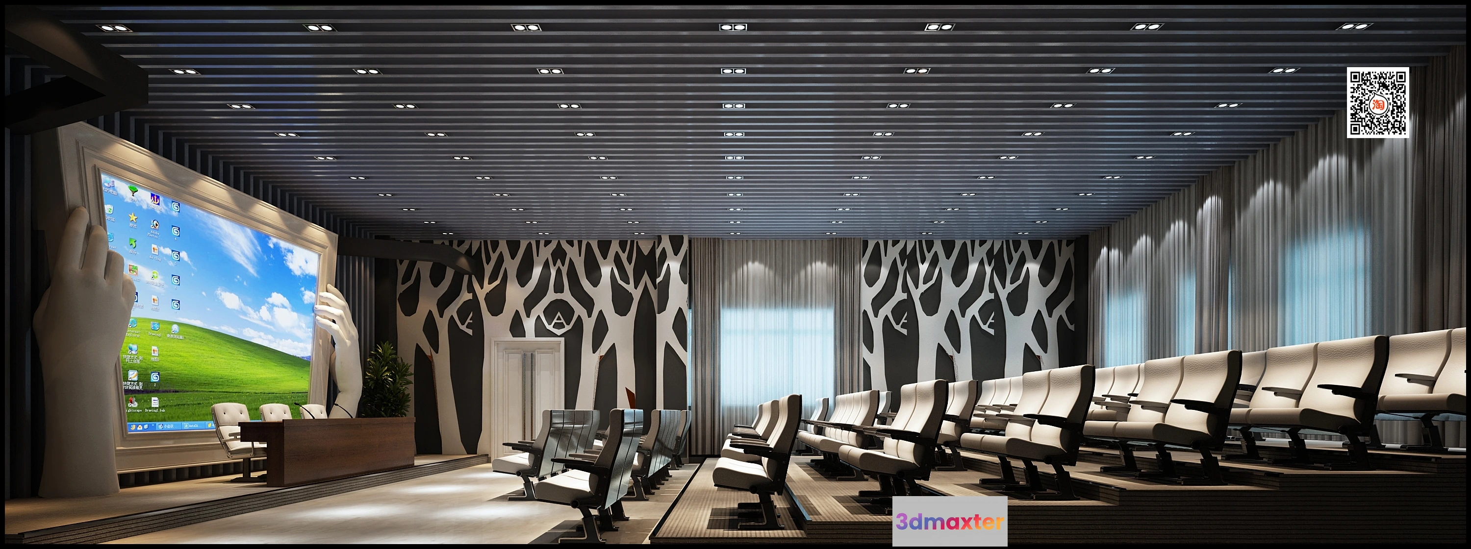 3D Models / 3D Scenes / Interior / Commercial Spaces / 3D SCHOOL INTERIOR (VRAY) – LECTURE HALL 3D SCENES – 046