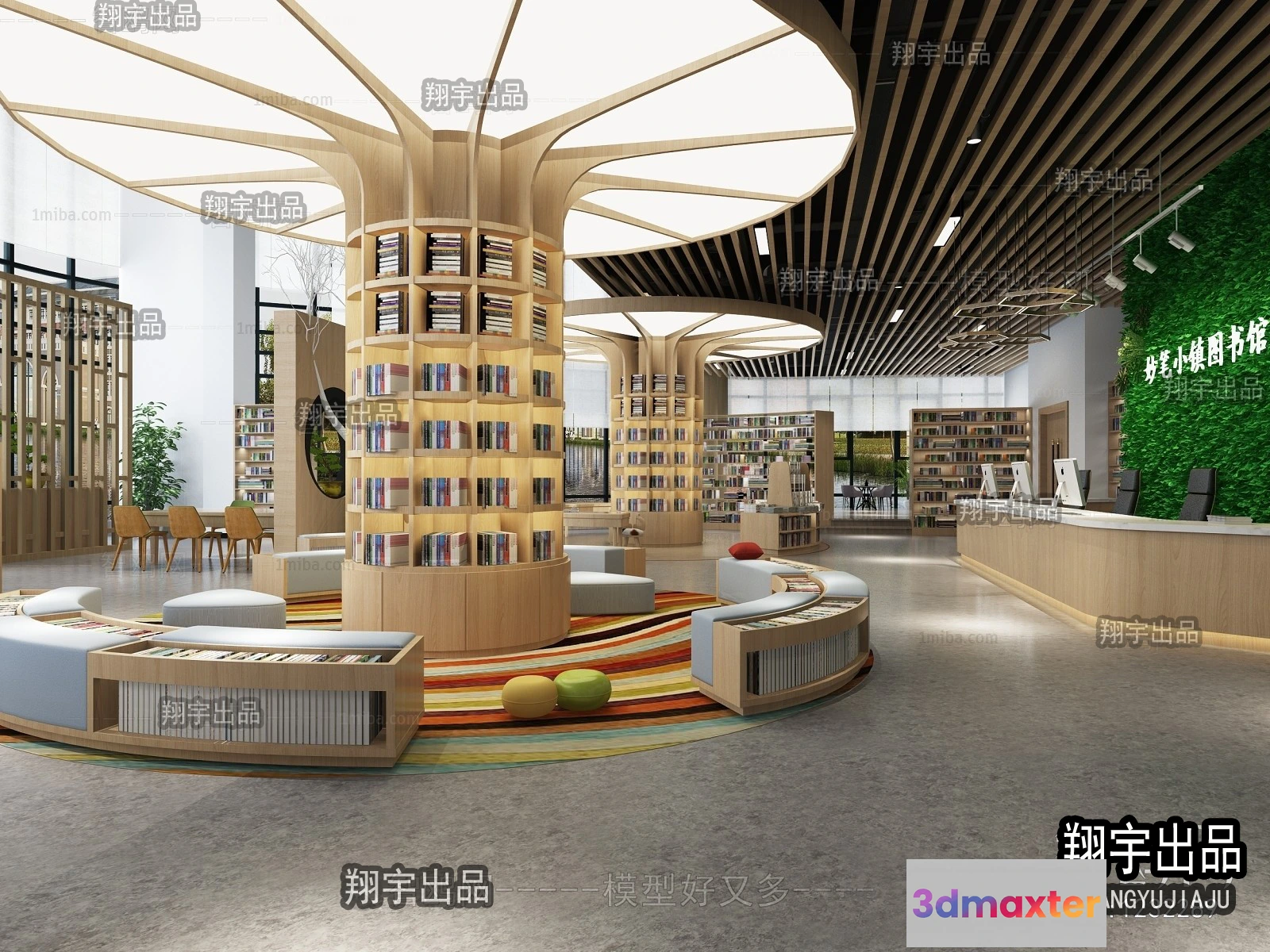 3D Models / 3D Scenes / Interior / Commercial Spaces / 3D SCHOOL INTERIOR (VRAY) – LIBRARY 3D SCENES – 006