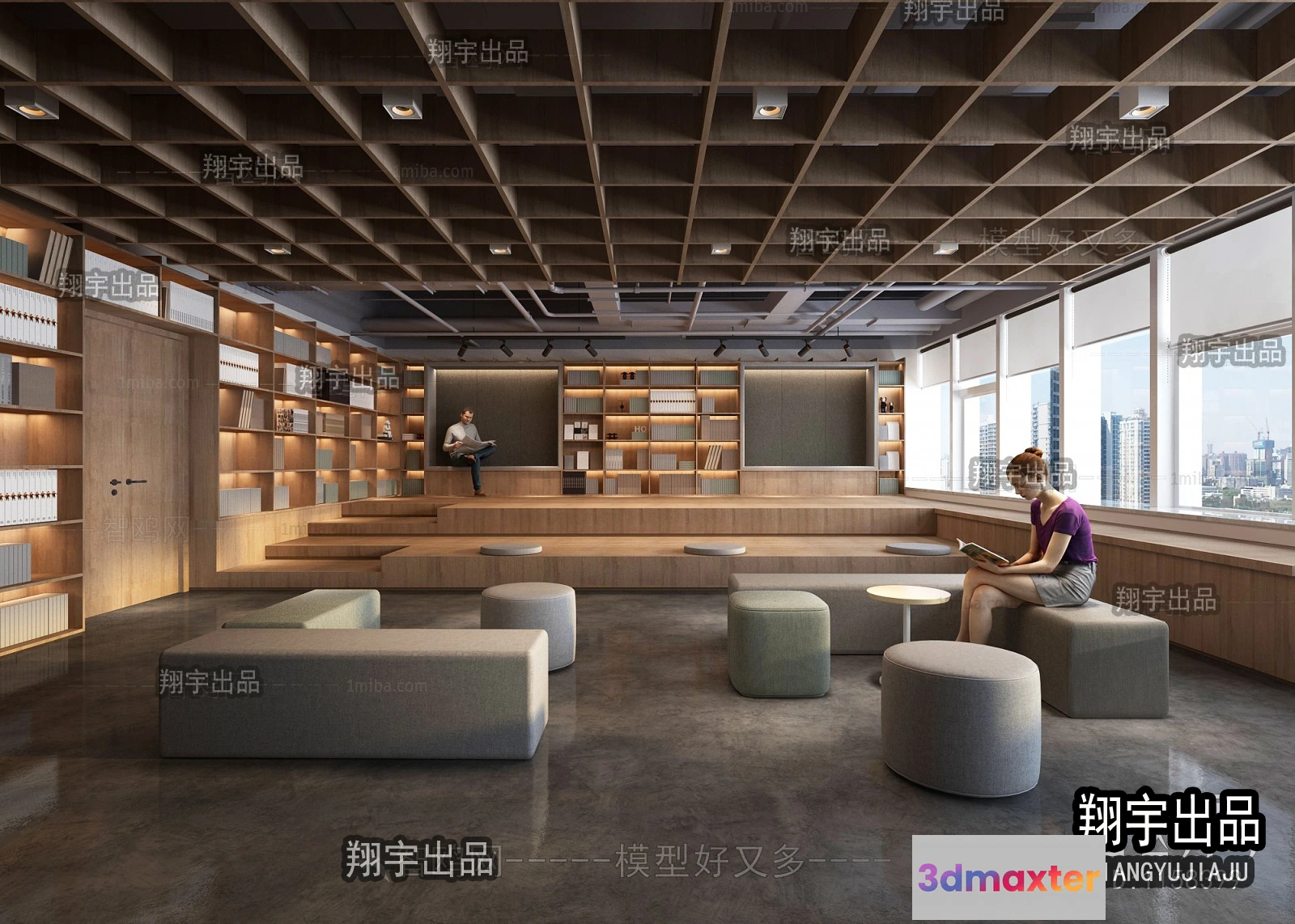 3D Models / 3D Scenes / Interior / Commercial Spaces / 3D SCHOOL INTERIOR (VRAY) – LIBRARY 3D SCENES – 031