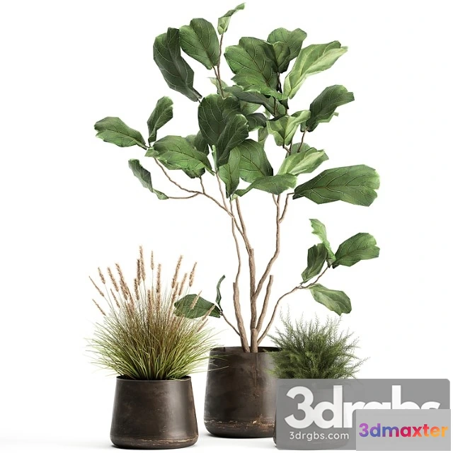 3D Models / Plants / Indoor / A collection of potted plants with a small ficus lyrata tree with large leaves. set 971.