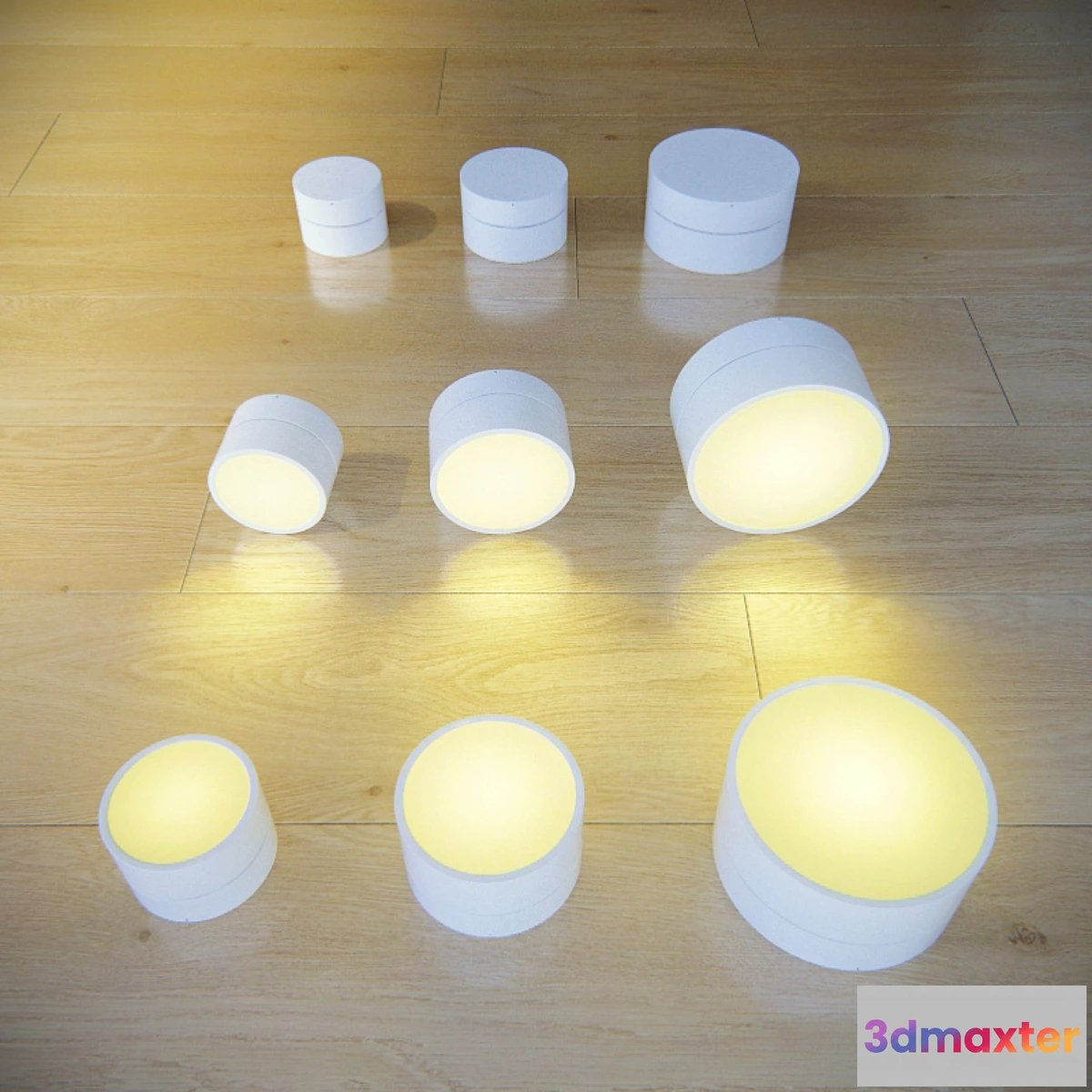 A series of overhead lights MOON http://www.centrsvet.ru/catalog/overhead/moon/#moon_4 – a reference to the description of the lights from left to right on the renderer: 1) MOON 4 (220 | 4 W Ø90 × 64 mm) 2) MOON 7 (220 | 7 W Ø110 × 69 mm) 3) MOON 15 (220 | 15 W Ø150 × 80 mm) Material and texture present. Complete files of 3ds Max 2010 OBJ and FBX