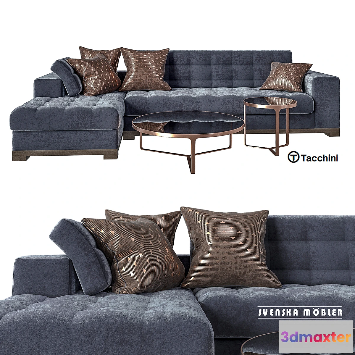 Modular sofa Anders of the factory Svenska mobler and coffee tables Cage of the Tacchini factory. Dimensions of the sofa: 3200 x 1600 x 905 mm Link to the manufacturer’s website: http://swedmebel.ru/kollekcii/anders1/ Tables: d500 x h460 d1000 x 320 mm Link to the manufacturer’s website: http://www.tacchini.it /en/cage/72/prdd.php The archive contains: – Textures – Files of the 2014th version under Corona 1.5 (PBR) – Export file .fbx – Material files (.mat)