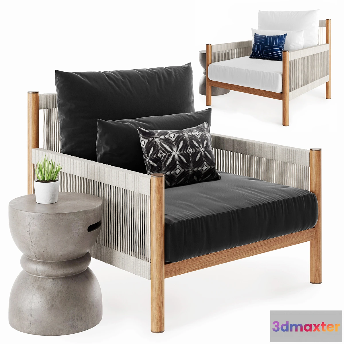 Chair Architect Outdoor Lounge Chair in two versions from coco republic + table Polygons: 728 352