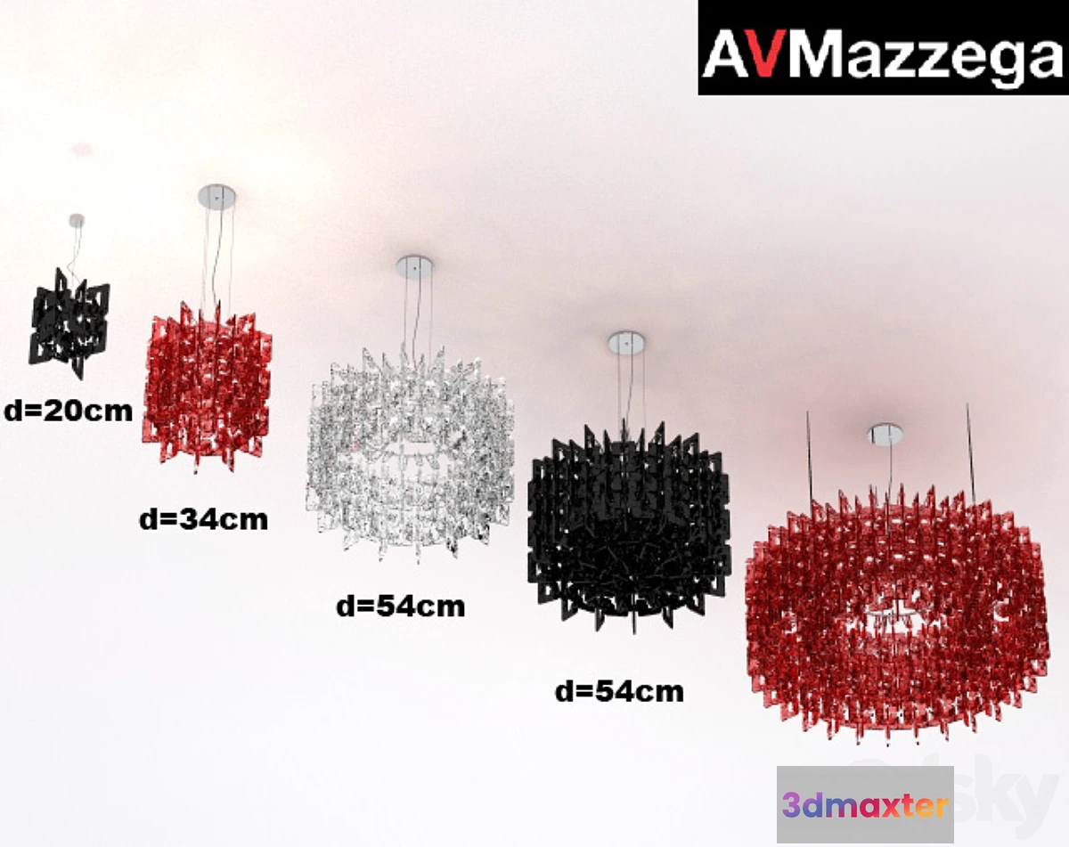 Set of chandeliers. The weight of all 5 patterns together 240000 polygons without smoothing. He modeled from drawings. Www.avmazzega.com/eng/prodotti_scheda.html?S=&C=Moderni&T=&F=Sixty&L=&P=&R=1&I=50&IF=Sixty&MC=SO3126 manufacturer site