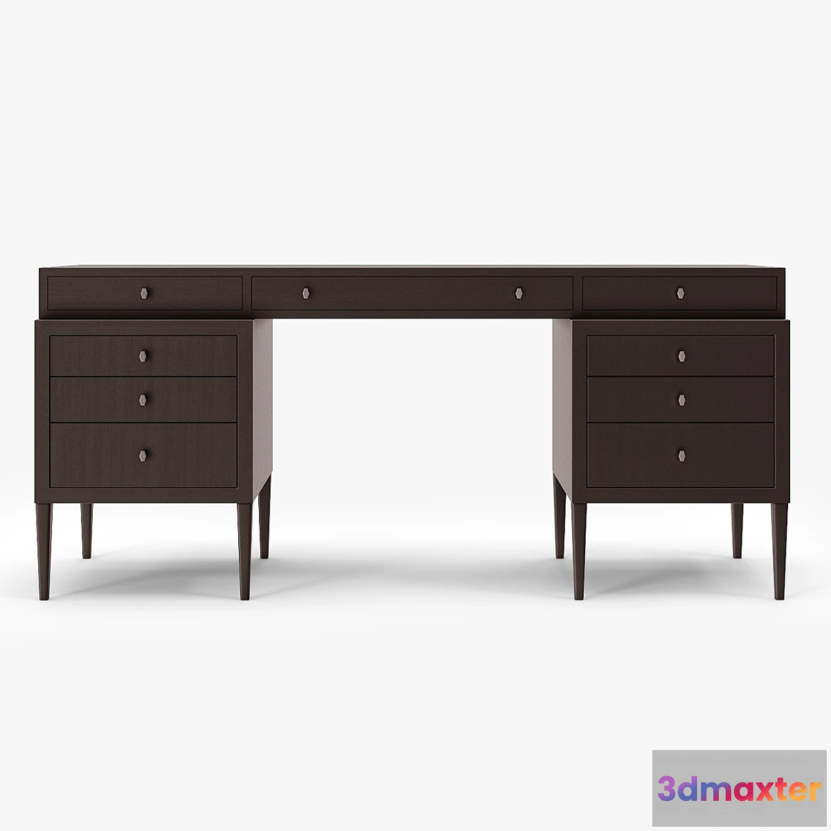 Perfectionist Desk – Barbara Barry This writing desk is an elegant interpretation of a double pedestal desk but on graceful tapered legs. Its simple box form with drawers for ample storage and thoughtful details like a pencil tray is offered in rich dark walnut or any color in the Brushwork program. Available as: No. B8002-45 – Perfectionist Writing Desk 221-Dark Walnut Dimensions: Width: 68 1/4 Inches Height: 30 Inches Depth: 22 1/4 Inches The model is based on the original manufacturer dimensions and t