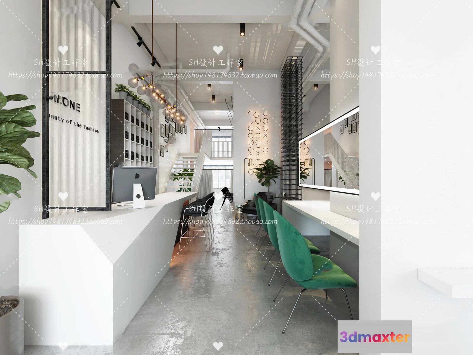 3D Models / 3D Scenes / Interior / BARBER SHOP 3D SCENES – VRAY RENDER – 01