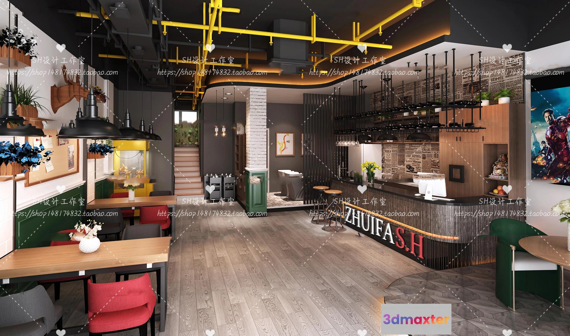 - Name: BARBER SHOP 3D SCENES – VRAY RENDER – 02