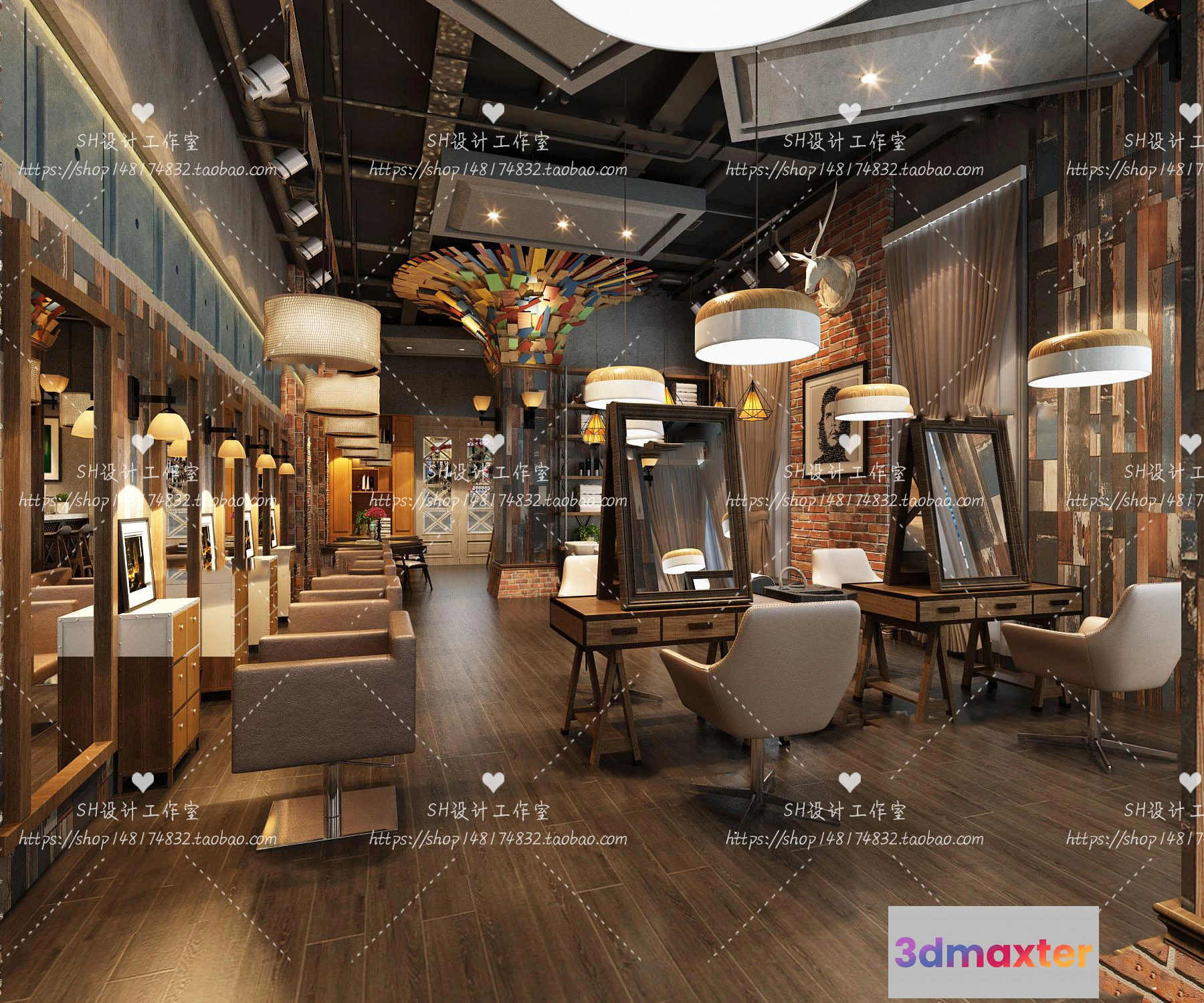 3D Models / 3D Scenes / Interior / BARBER SHOP 3D SCENES – VRAY RENDER – 25