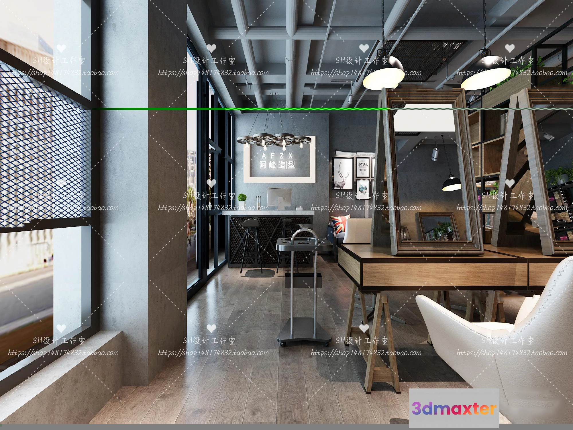 3D Models / 3D Scenes / Interior / BARBER SHOP 3D SCENES – VRAY RENDER – 39