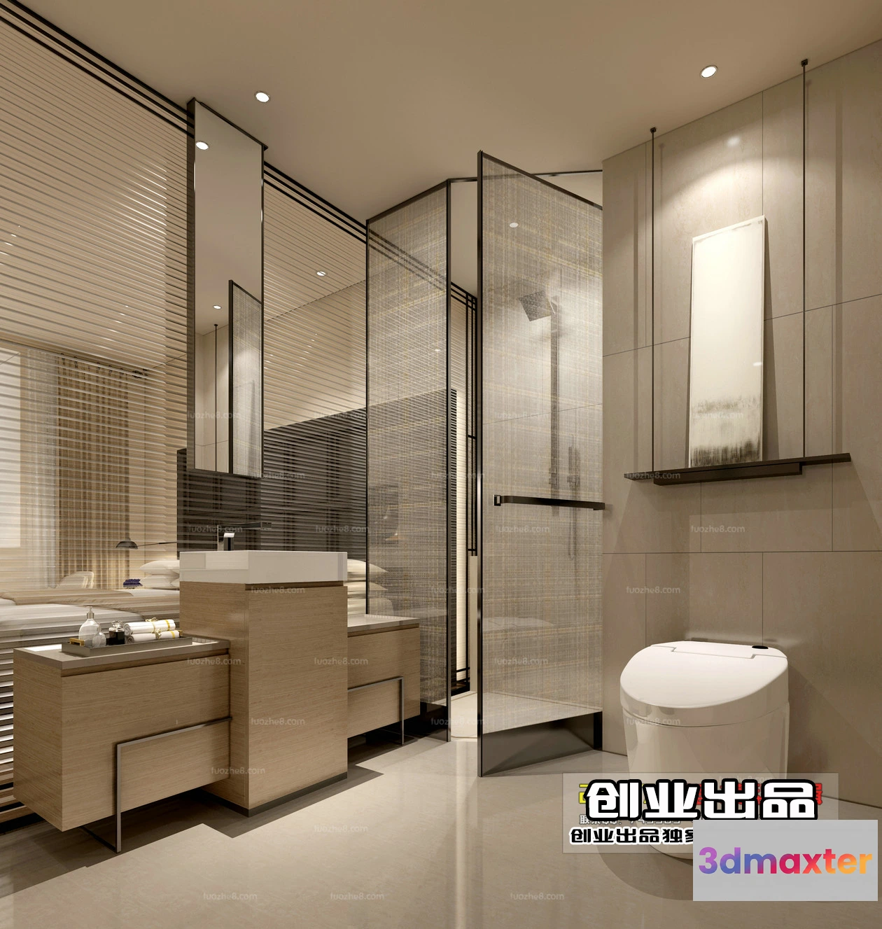 3D Models / 3D Scenes / Interior / Bathroom / Bathroom 3D Interior Scene – Japanese Style – 003 3D Max