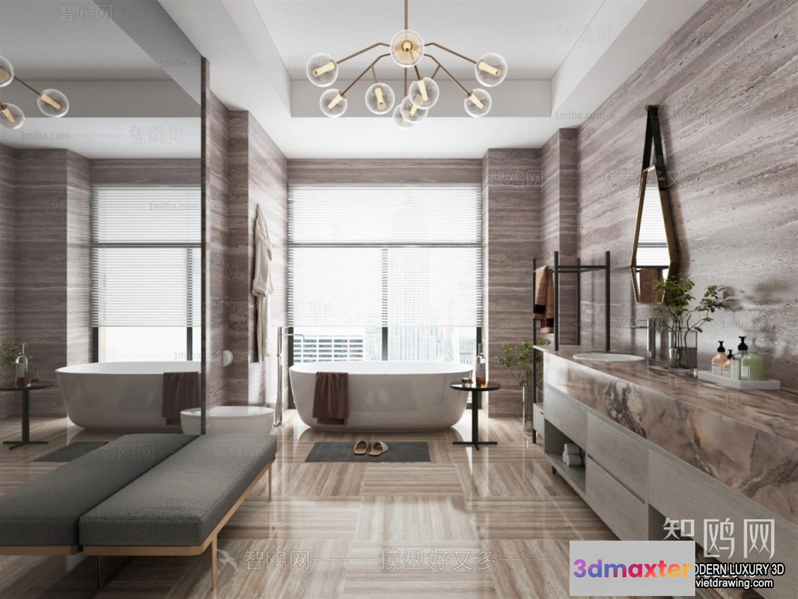 3D Models / 3D Scenes / Interior / Bathroom / Bathroom – 3D Interior Scene – Luxury Style – 005 3D Max