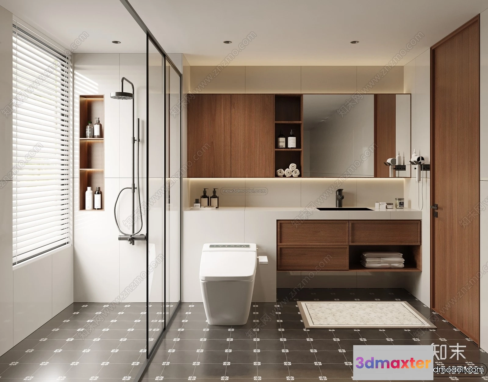 3D Models / 3D Scenes / Interior / Bathroom / Bathroom 3D Interior Scene Model – Wabi Sabi Style – 010 3D Max