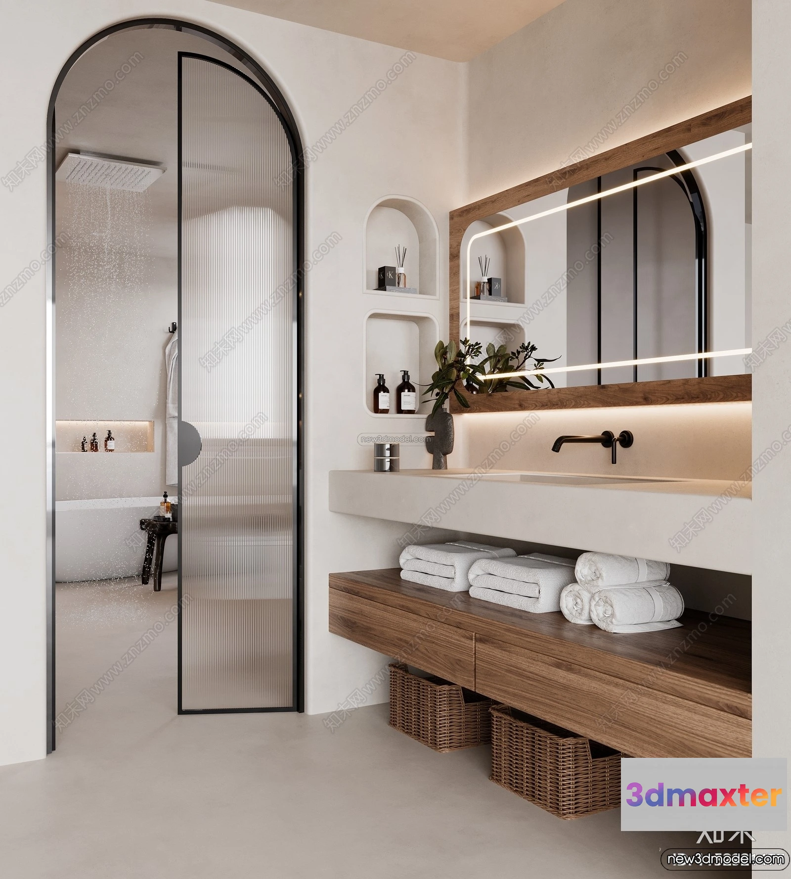 3D Models / 3D Scenes / Interior / Bathroom / Bathroom 3D Interior Scene Model – Wabi Sabi Style – 011 3D Max