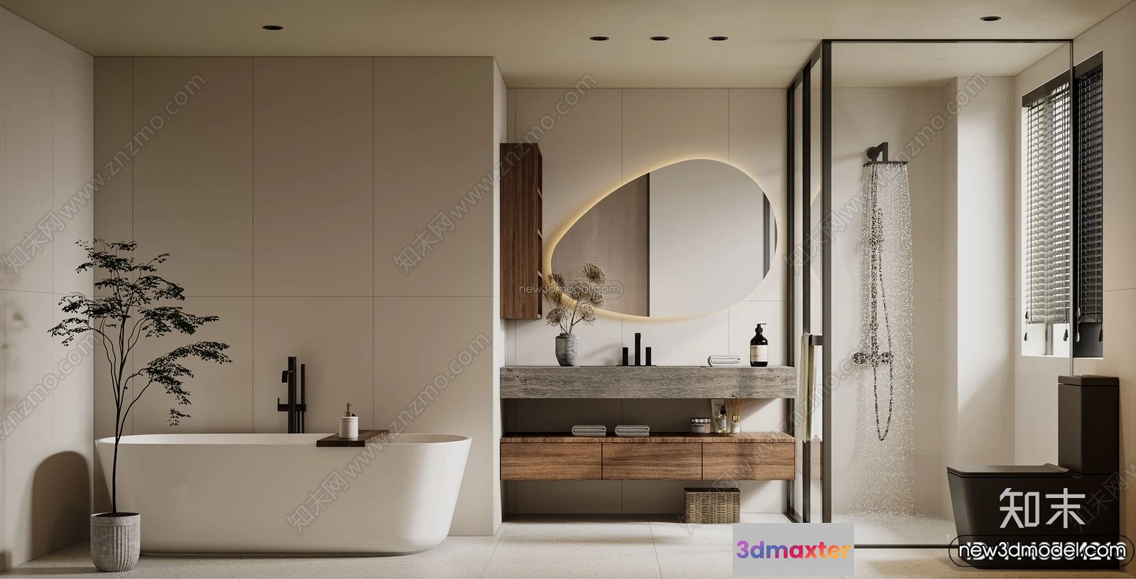 3D Models / 3D Scenes / Interior / Bathroom / Bathroom 3D Interior Scene Model – Wabi Sabi Style – 012 3D Max