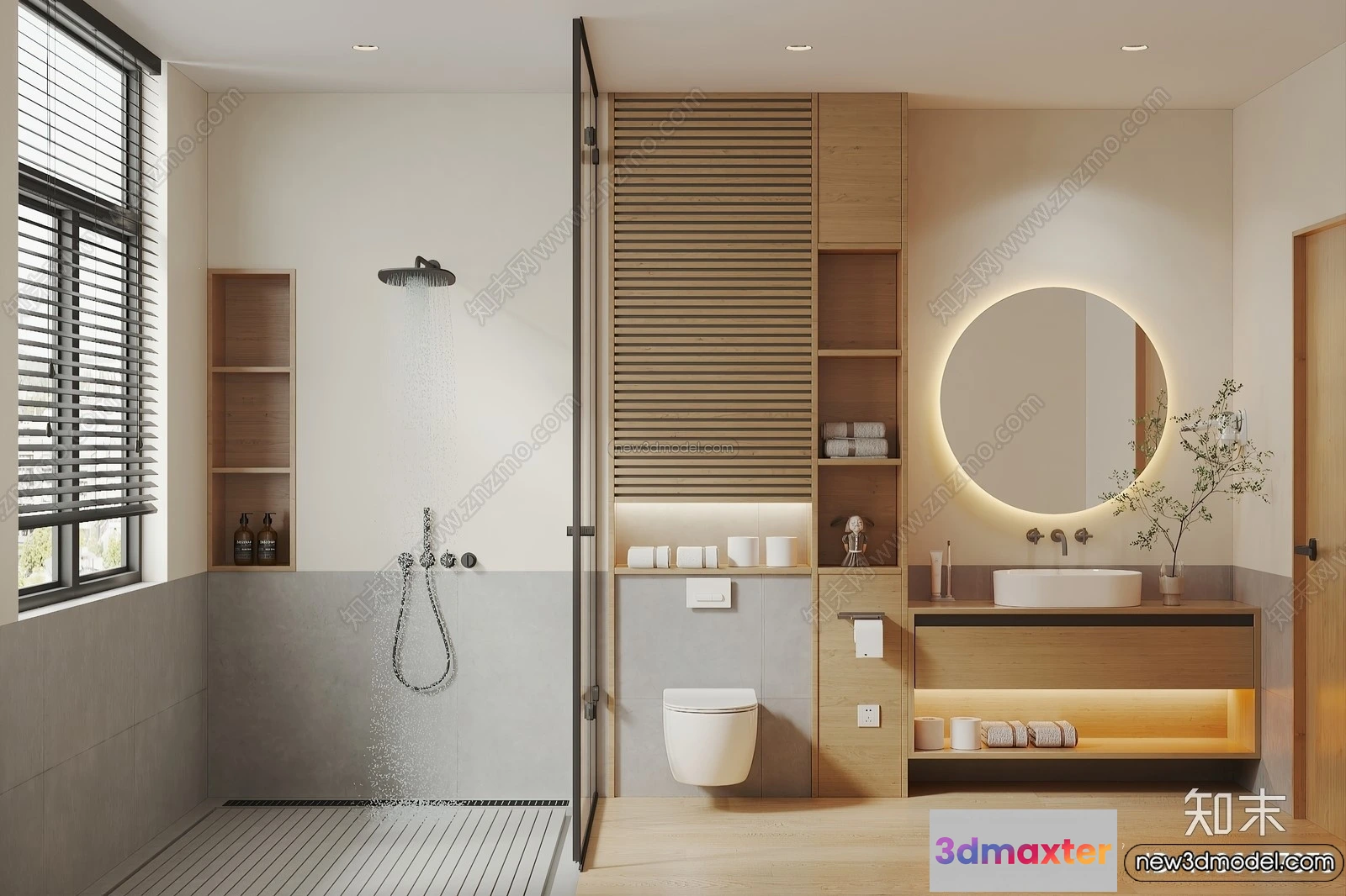 3D Models / 3D Scenes / Interior / Bathroom / Bathroom 3D Interior Scene Model – Wabi Sabi Style – 015 3D Max