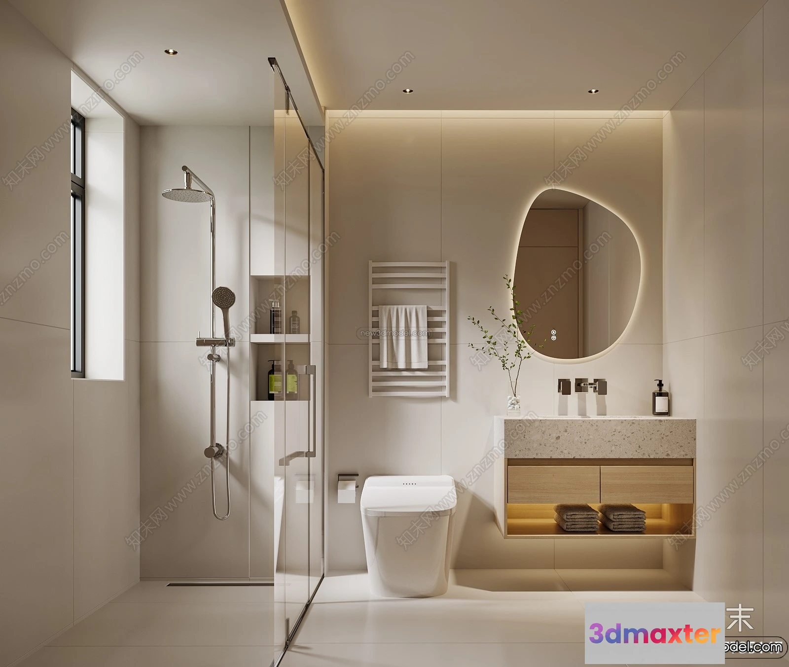 3D Models / 3D Scenes / Interior / Bathroom / Bathroom 3D Interior Scene Model – Wabi Sabi Style – 018 3D Max