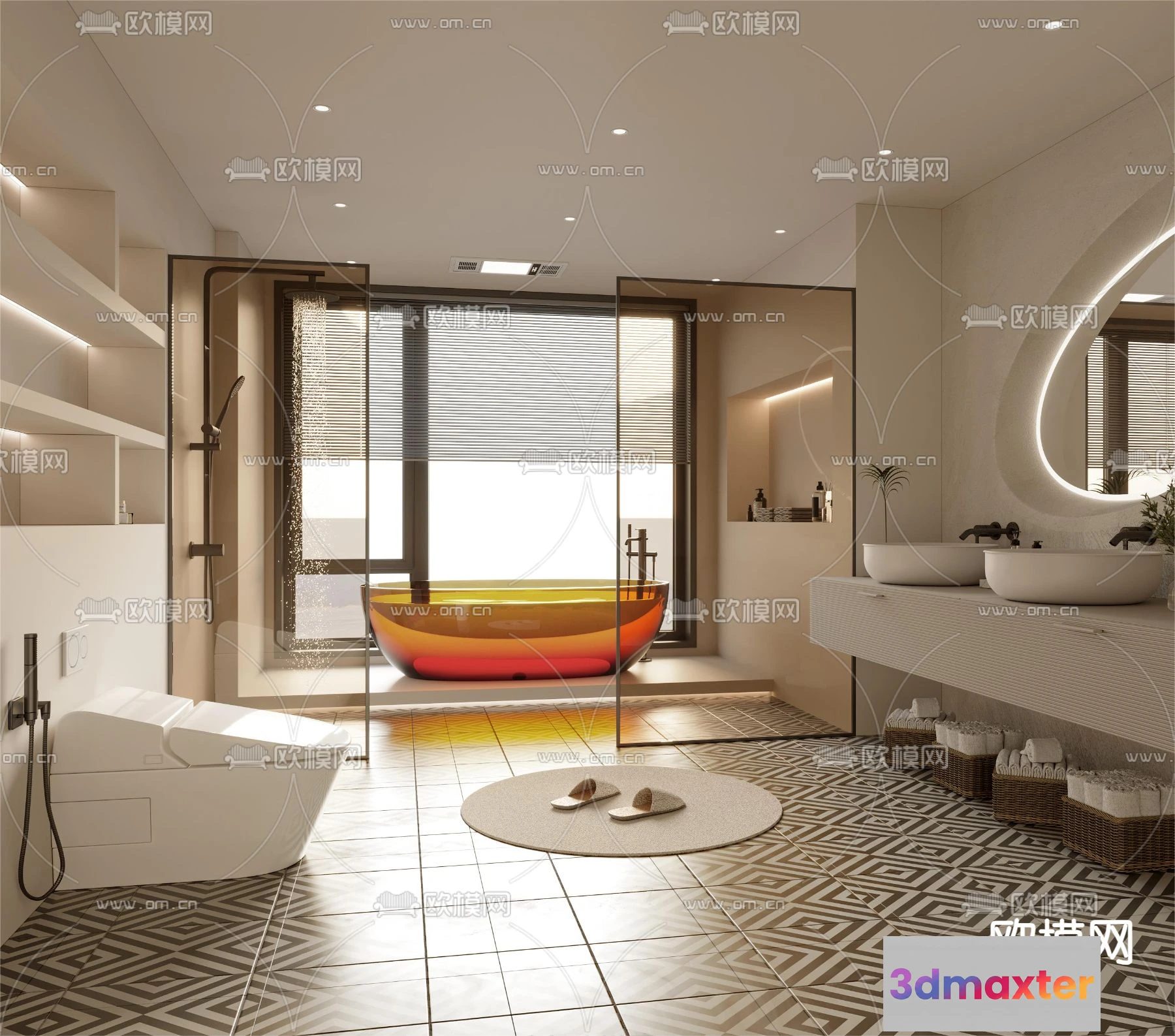 3D Models / 3D Scenes / Interior / Bathroom / BATHROOM SETS – CORONA – 3D MODEL – 2186
