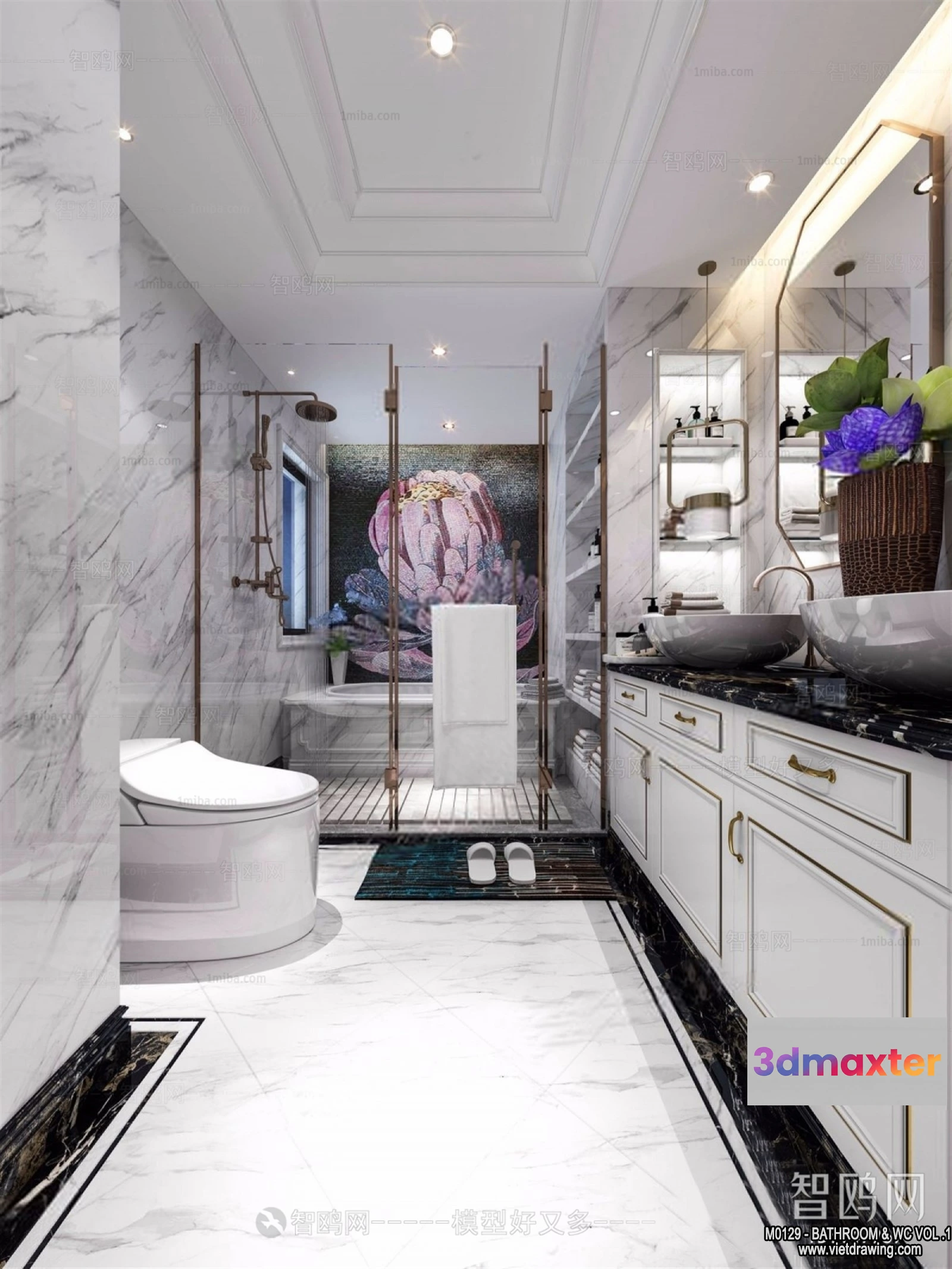 - Name: Bathroom – Toilet – WC – RestRoom – 3D Interior Scene – 085