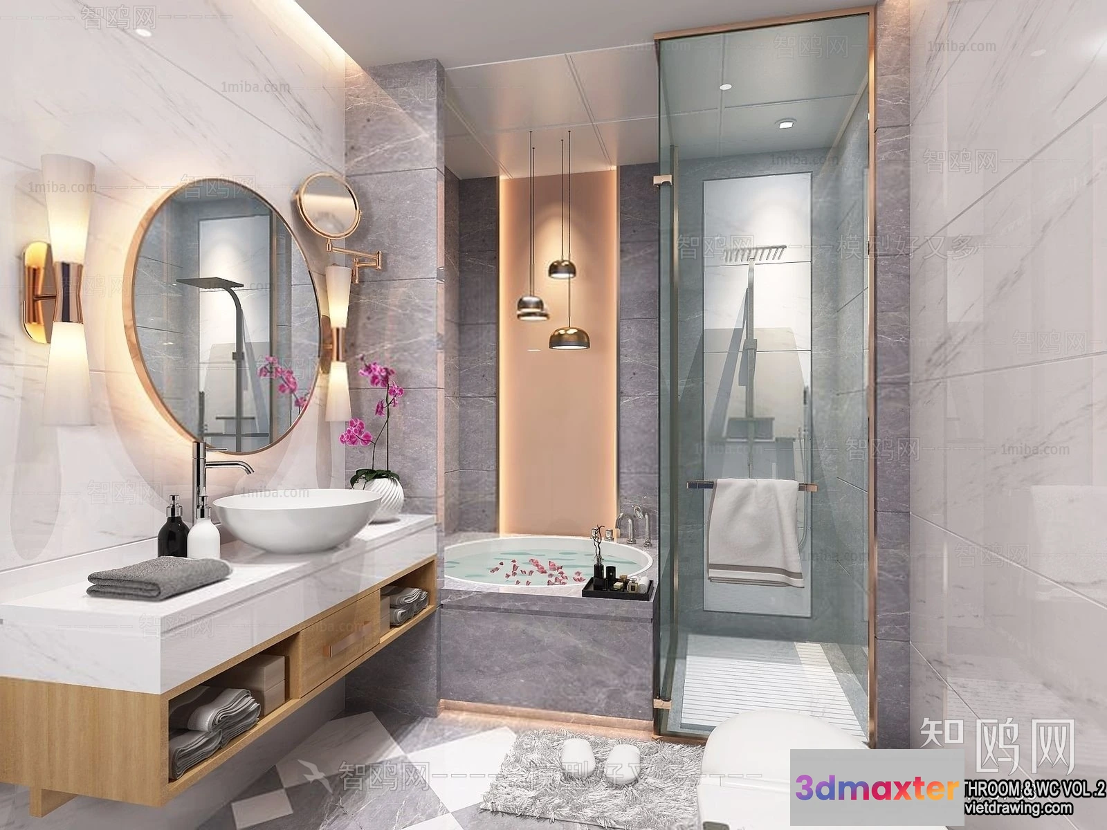- Name: Bathroom – Toilet – WC – RestRoom – 3D Interior Scene – 274