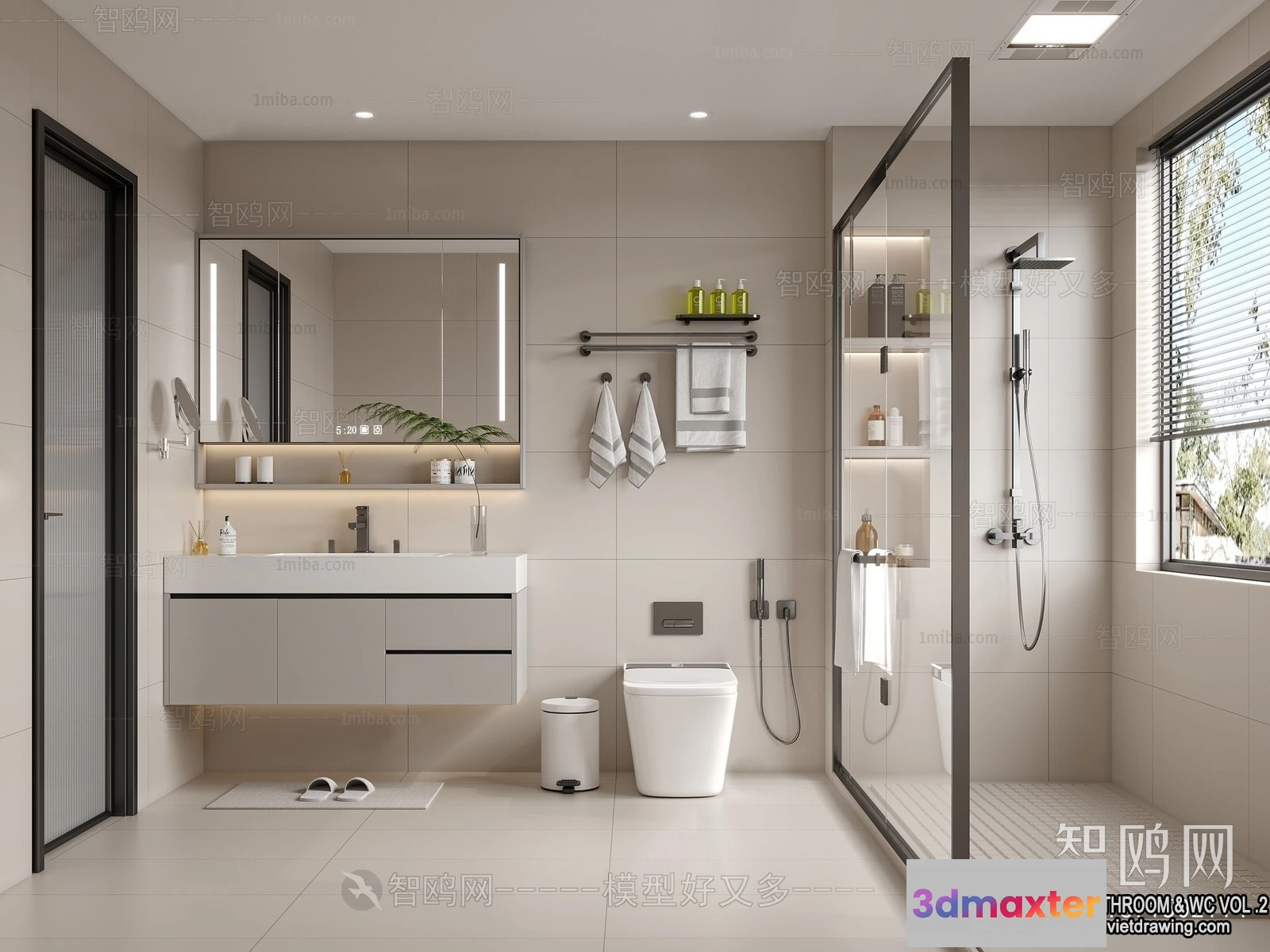 - Name: Bathroom – Toilet – WC – RestRoom – 3D Interior Scene – 436