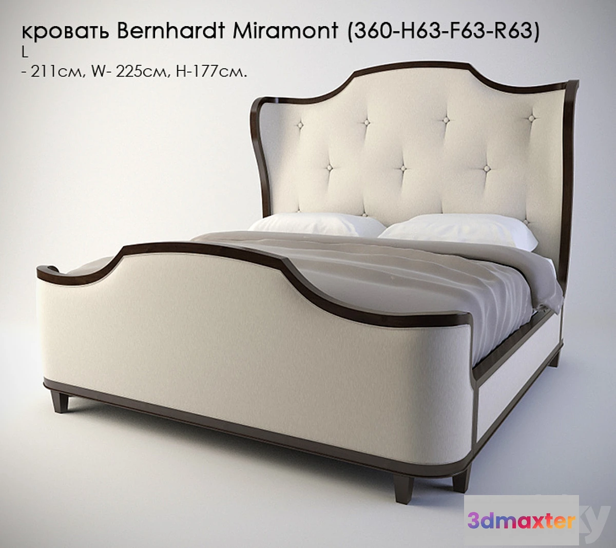 Bed Bernhardt Miramont (360-H63-F63-R63): L- 211sm W- 225sm H-177cm. 3ds max design 2014 Vray FBX.