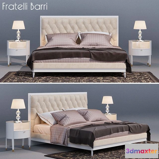 The kit includes: – Bed Fratelli Barri Mestre Article FB.BD.MES.223 – Bedside table Fratelli Barri Mestre ArtikulFB.BST.MES.224 – Table Lamp Eichholtz Lombard ArtikulFB.BST.MES.224 – Carpet Cottage 2098- 3308