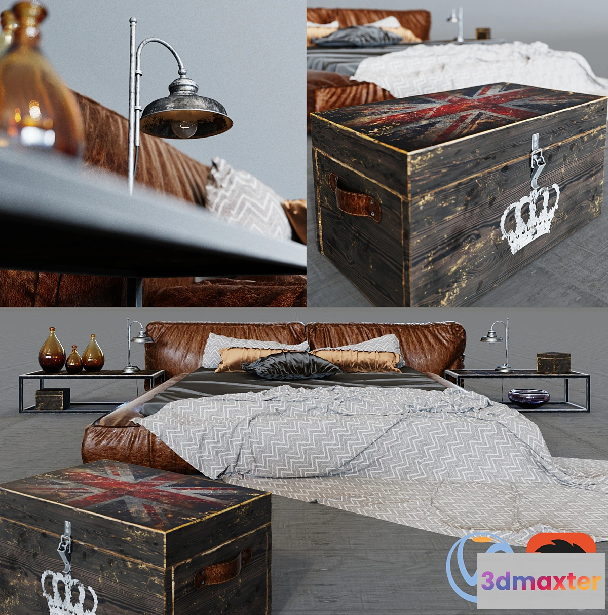 Complete set of archive: Files Vray max2012 + Corona + FBX Bed Manufacturer Illini lamp VR.TEREZA Favel Chest BRITISH LOFT Vase Amber Loft Bed pillows Tables