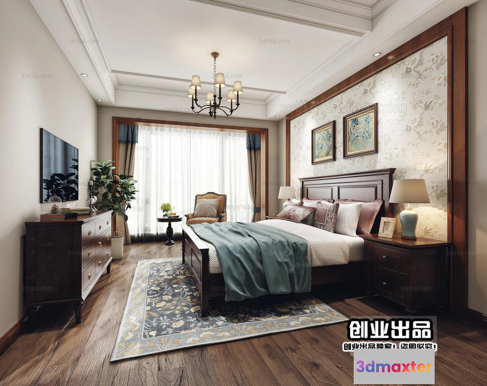 3D Models / 3D Scenes / Interior / Bedroom / Bedroom 3D Interior Scene – American Style – 002 3D Max