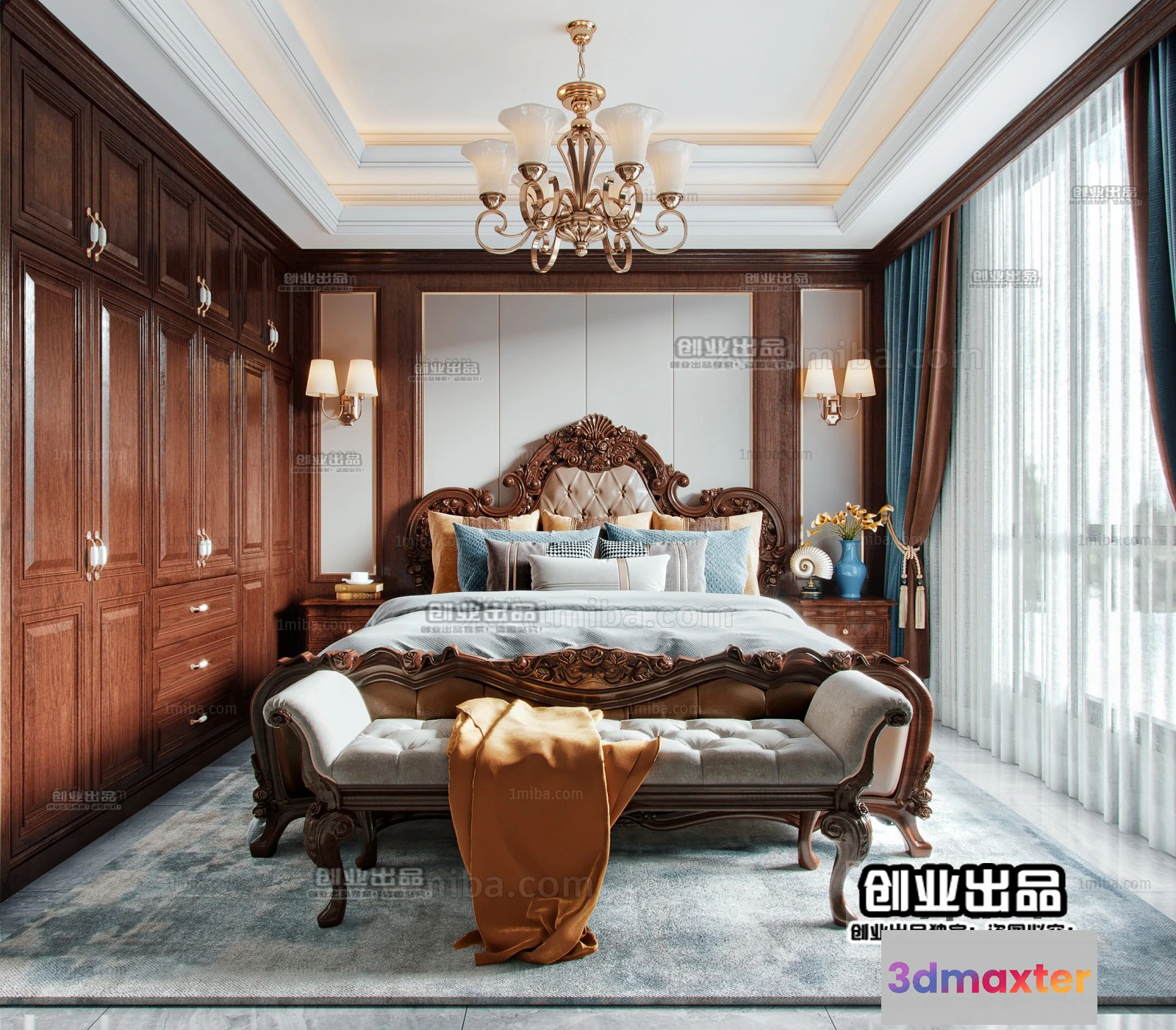 3D Models / 3D Scenes / Interior / Bedroom / Bedroom 3D Interior Scene – American Style – 020 3D Max