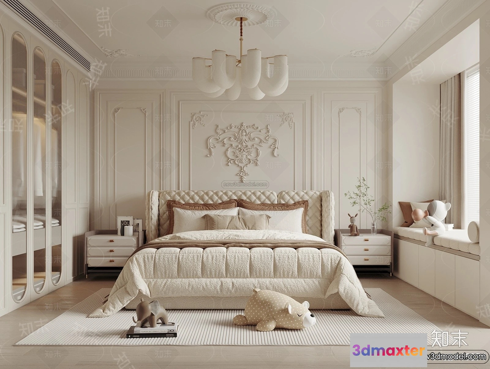 - Name: Bedroom – 3D Interior Scene – French Style – 006