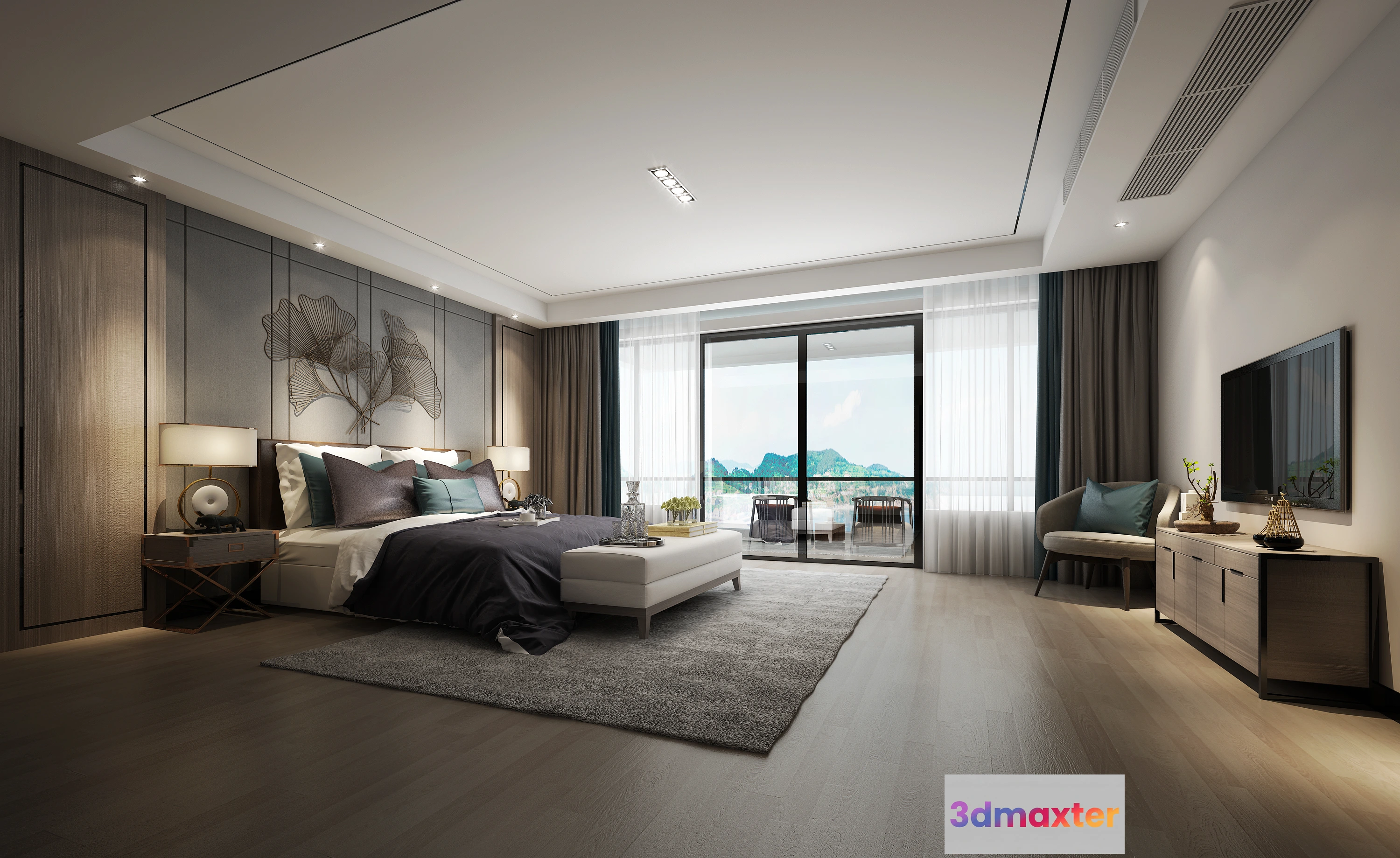 3D Models / 3D Scenes / Interior / Bedroom / Bedroom 3D Interior Scene – Japanese Style – 010 3D Max