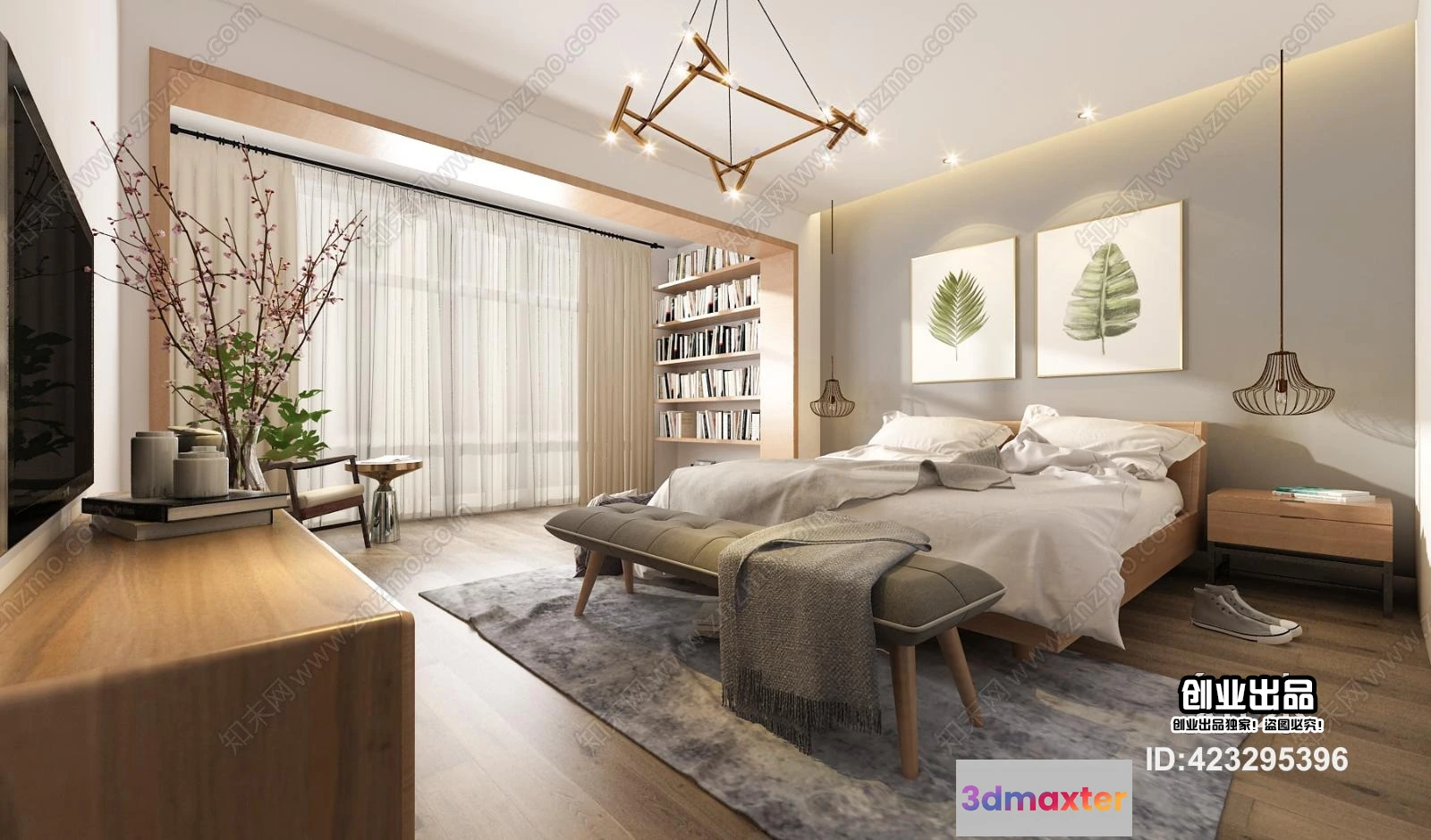 3D Models / 3D Scenes / Interior / Bedroom / Bedroom 3D Interior Scene – Japanese Style – 027 3D Max