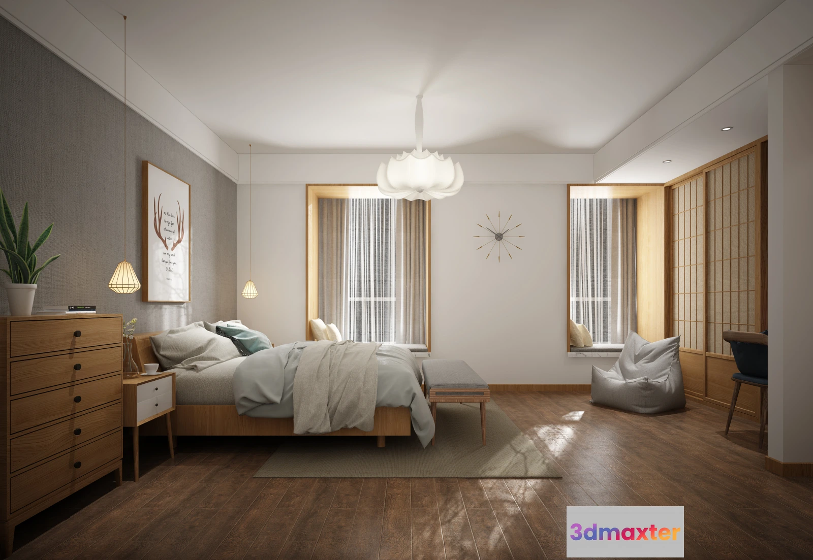 3D Models / 3D Scenes / Interior / Bedroom / Bedroom 3D Interior Scene – Japanese Style – 032 3D Max