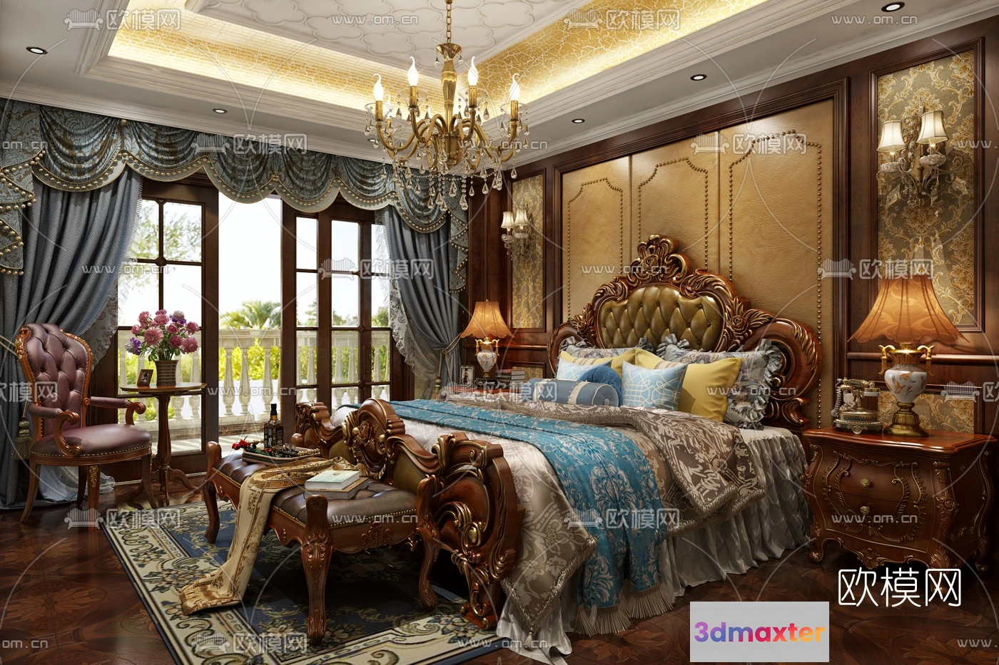 Bedroom 3D Interior Scene Model – European Style – 007 3D Max