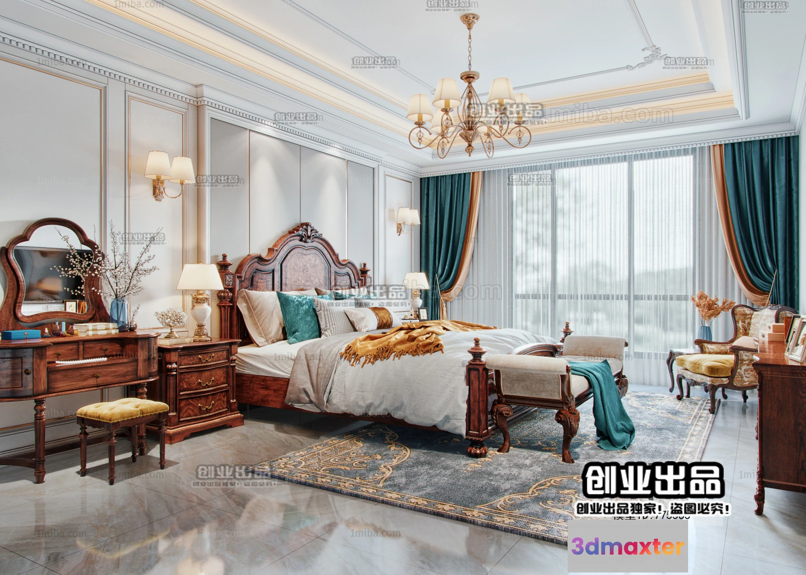 3D Models / 3D Scenes / Interior / Bedroom / Bedroom 3D Interior Scene Model – European Style – 012 3D Max