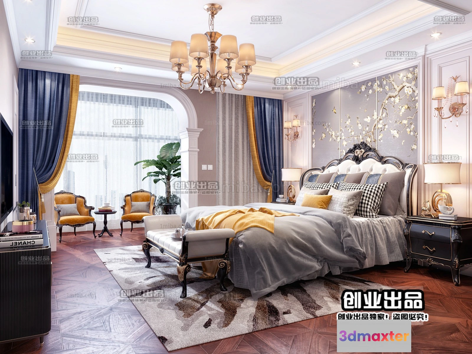 3D Models / 3D Scenes / Interior / Bedroom / Bedroom 3D Interior Scene Model – European Style – 016 3D Max