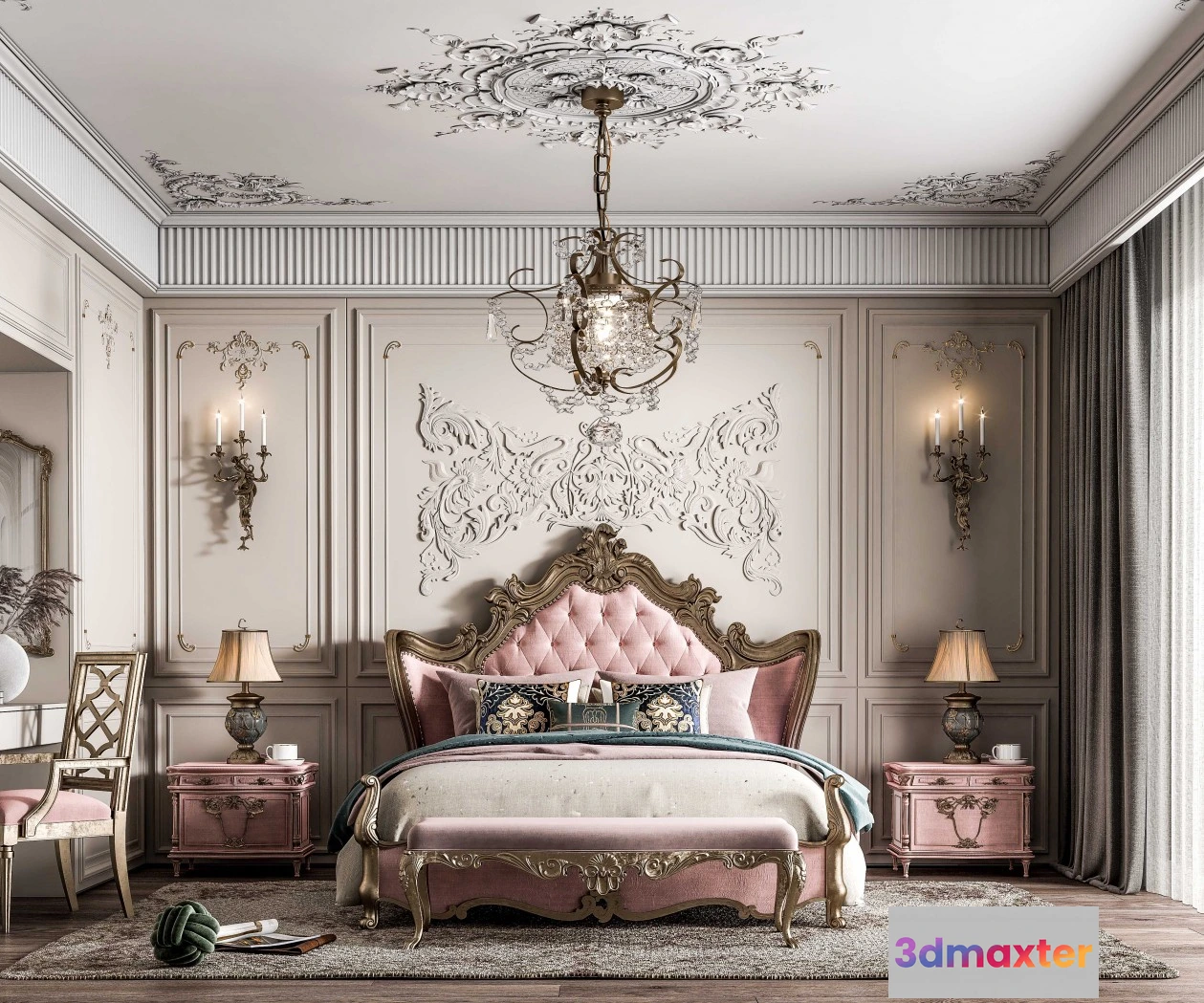 3D Models / 3D Scenes / Interior / Bedroom / Bedroom 3D Interior Scene Model – European Style – 021 3D Max