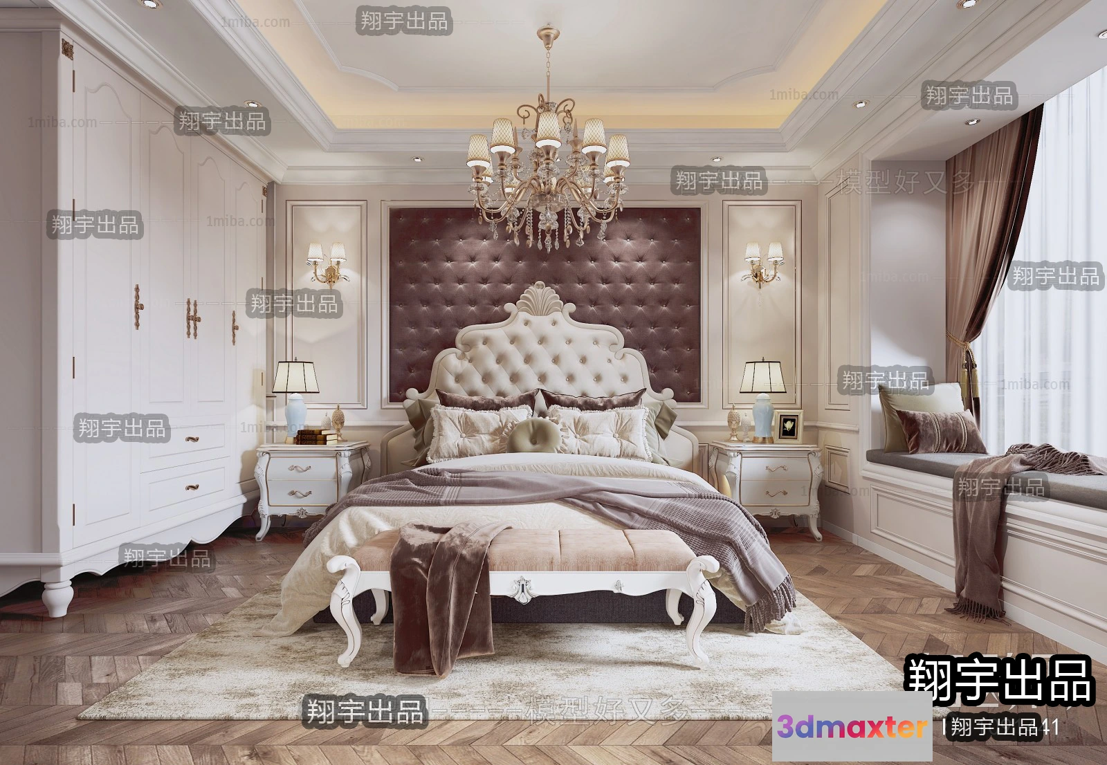 3D Models / 3D Scenes / Interior / Bedroom / Bedroom 3D Interior Scene Model – European Style – 032 3D Max