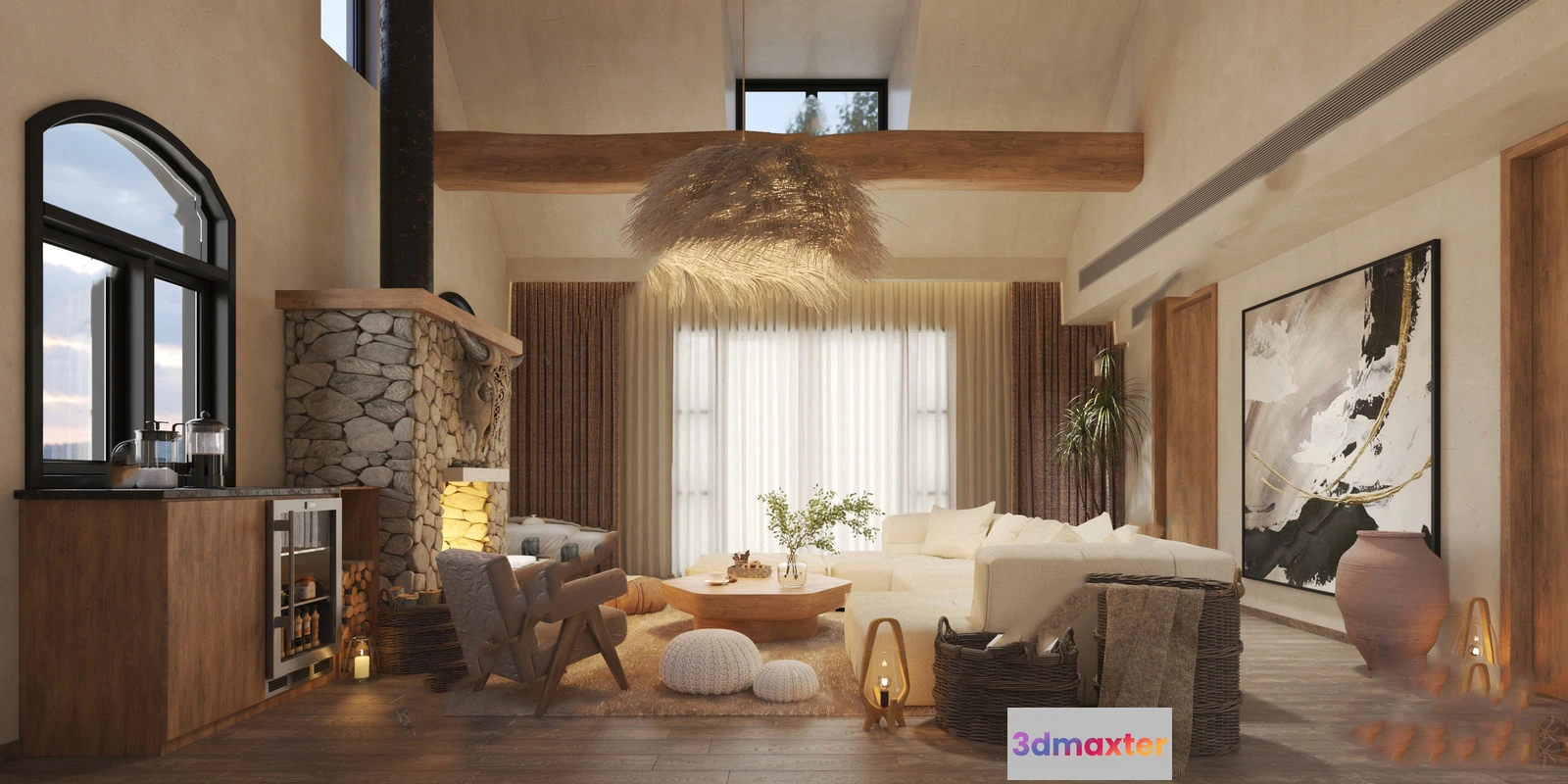 - Name: Bedroom 3D Interior Scene Model – Wabi Sabi Style – 005