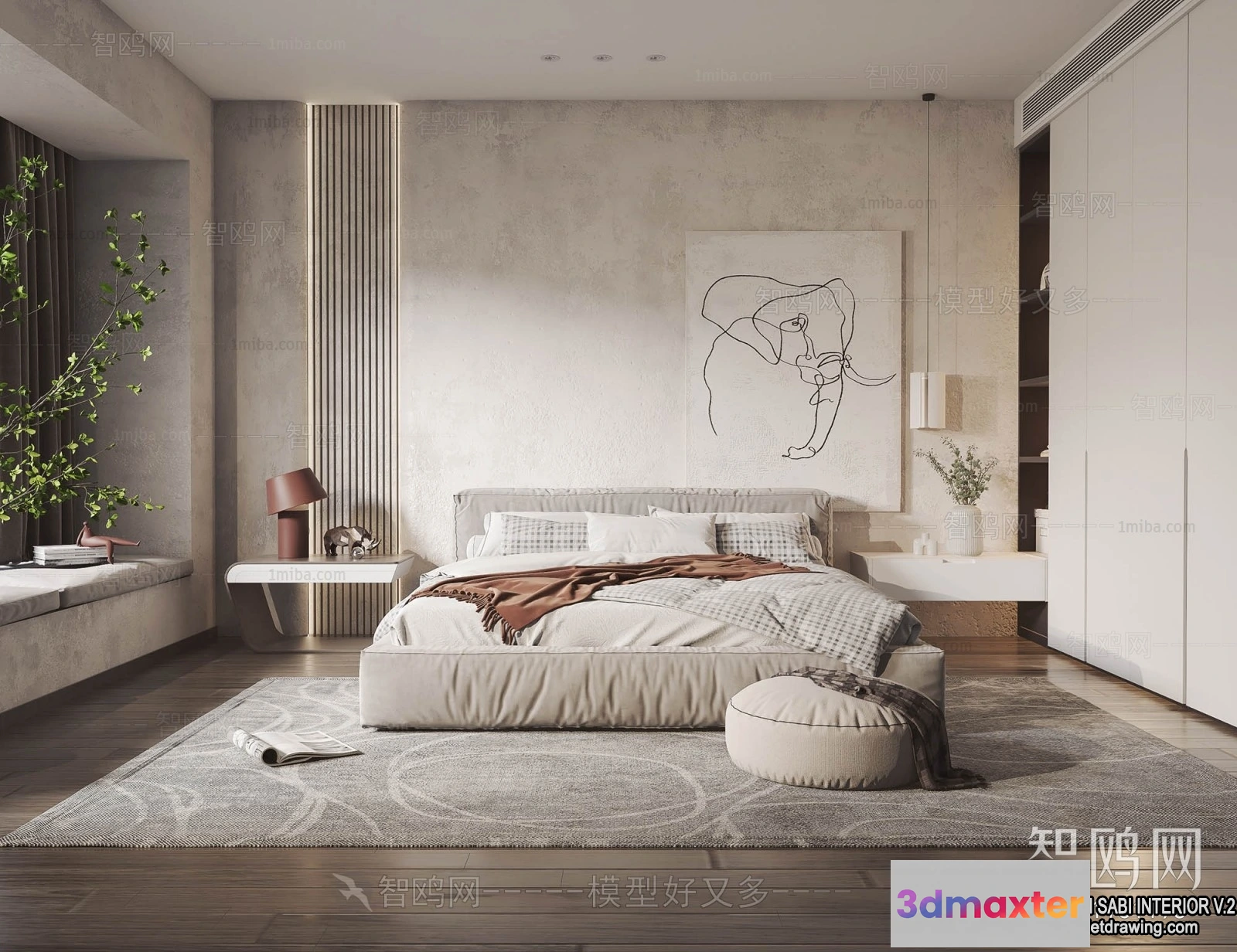 3D Models / 3D Scenes / Interior / Bedroom / Bedroom 3D Interior Scene Model – Wabi Sabi Style – 025 3D Max