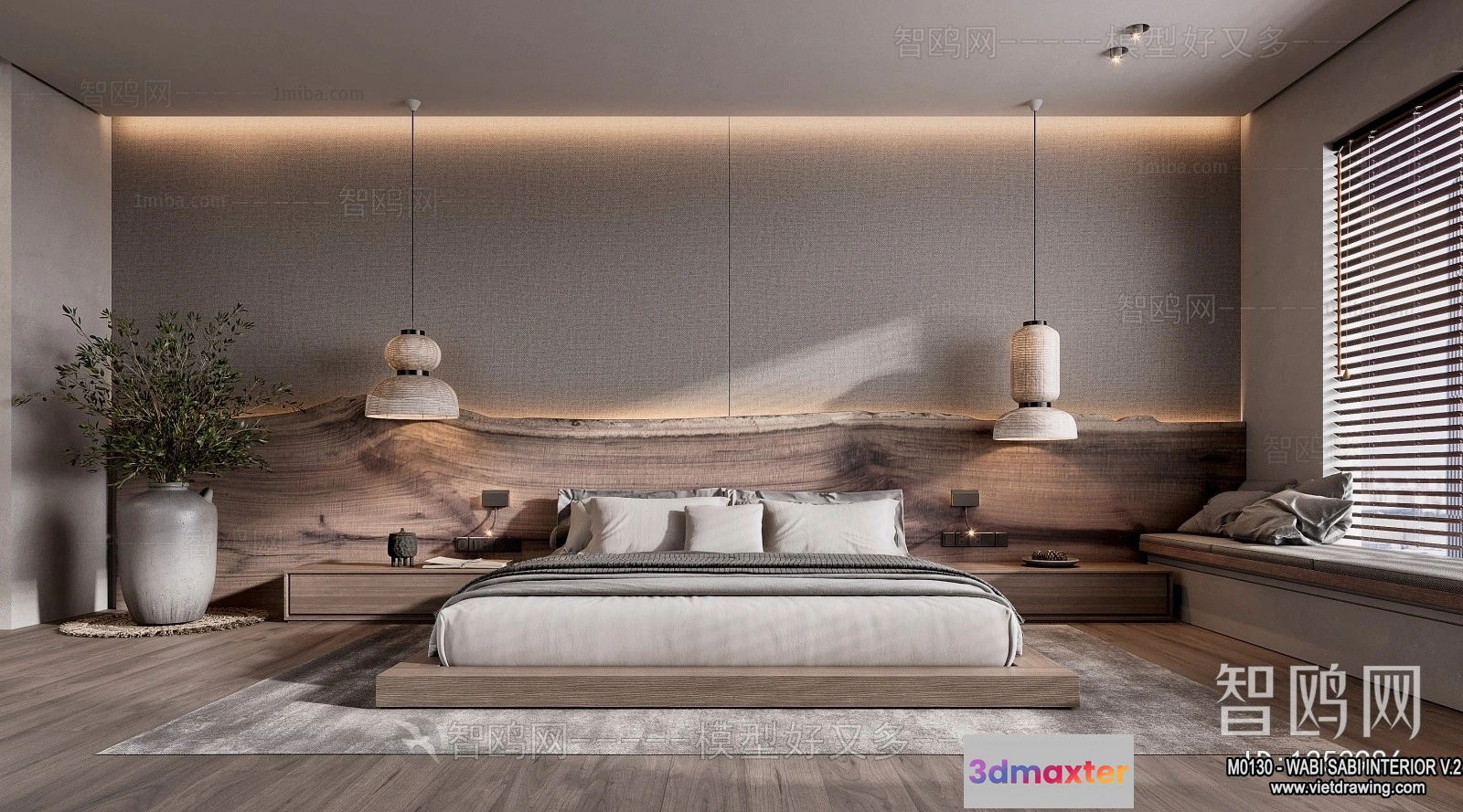 3D Models / 3D Scenes / Interior / Bedroom / Bedroom 3D Interior Scene Model – Wabi Sabi Style – 027 3D Max