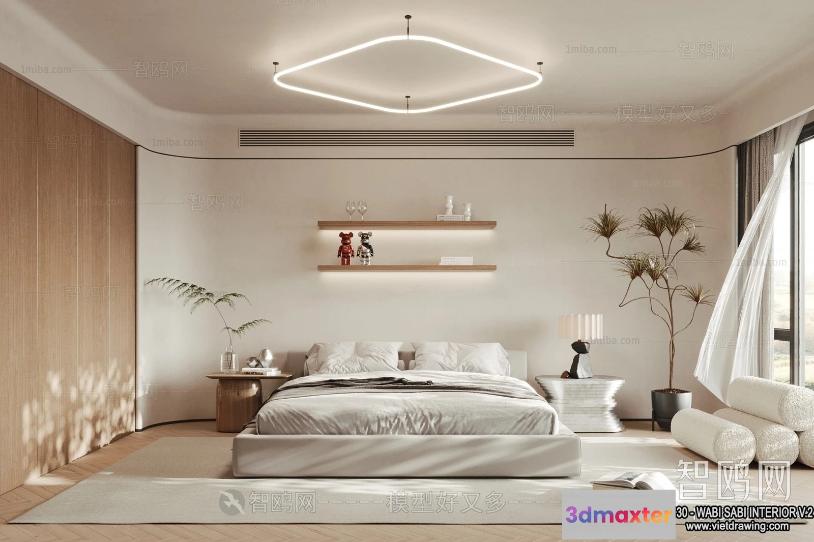 - Name: Bedroom 3D Interior Scene Model – Wabi Sabi Style – 034