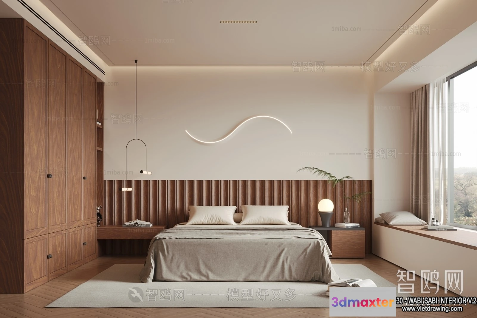 - Name: Bedroom 3D Interior Scene Model – Wabi Sabi Style – 036