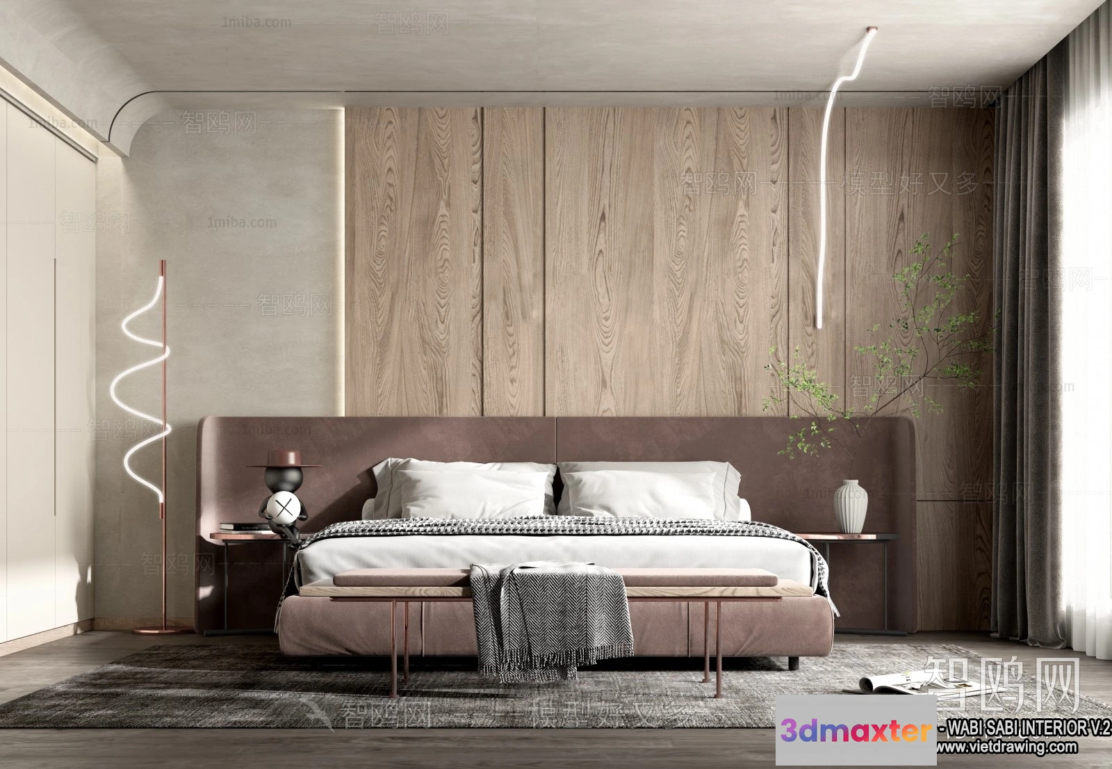 - Name: Bedroom 3D Interior Scene Model – Wabi Sabi Style – 040