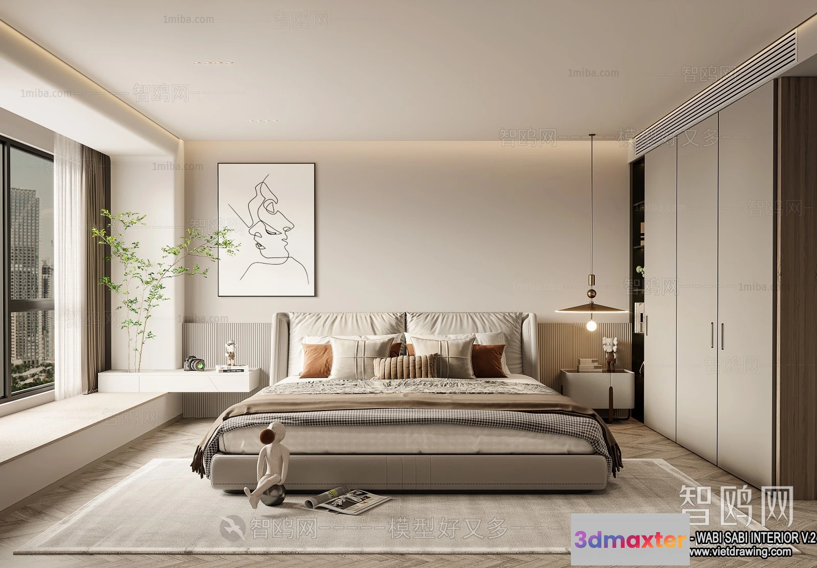 - Name: Bedroom 3D Interior Scene Model – Wabi Sabi Style – 046