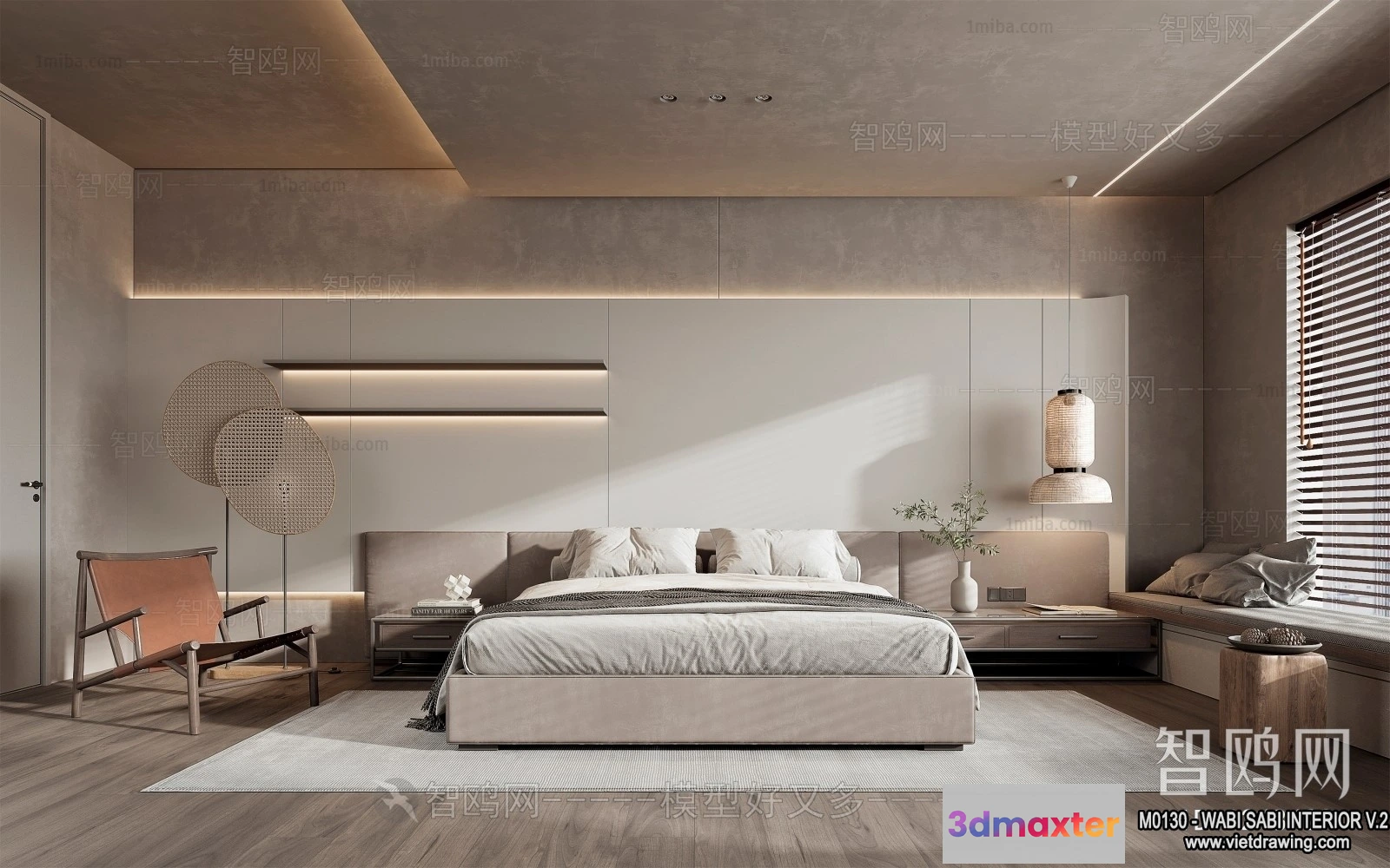 3D Models / 3D Scenes / Interior / Bedroom / Bedroom 3D Interior Scene Model – Wabi Sabi Style – 050 3D Max